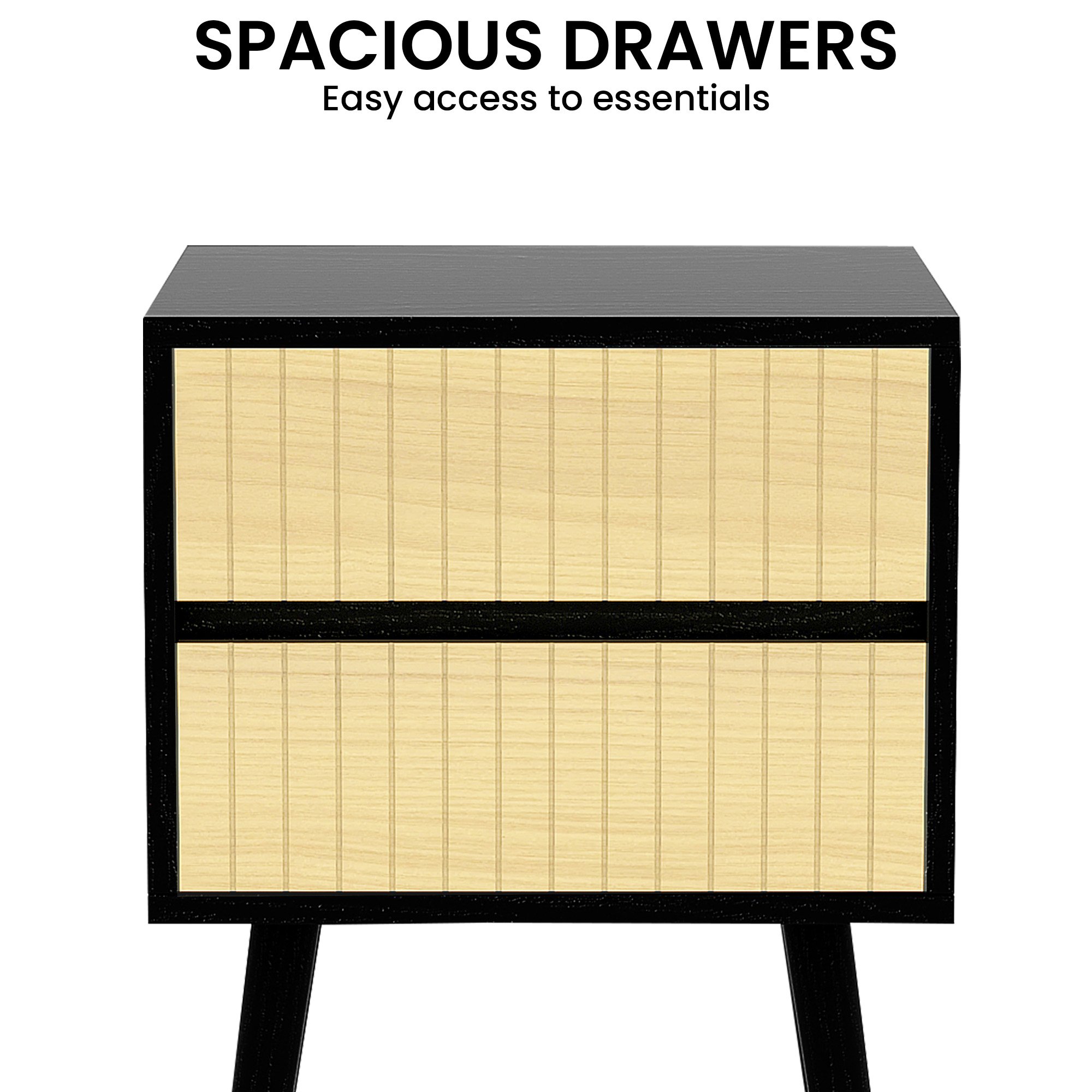 Sarantino Ivan Bedside Table Night Stand – Black/natural