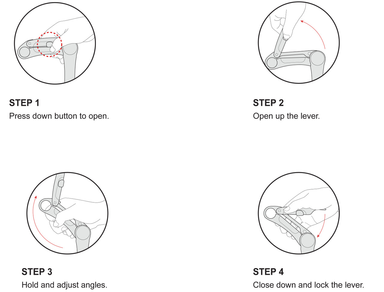 - Simple yet effective quick release mechanism with pre-adjust screw for handlebar tolerance control