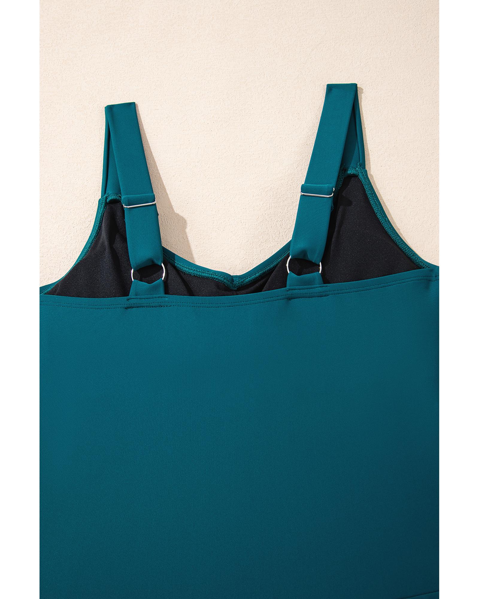 Sea Green Adjustable Straps Cutout Ruched Knot Slit One Piece Swim Dress – M