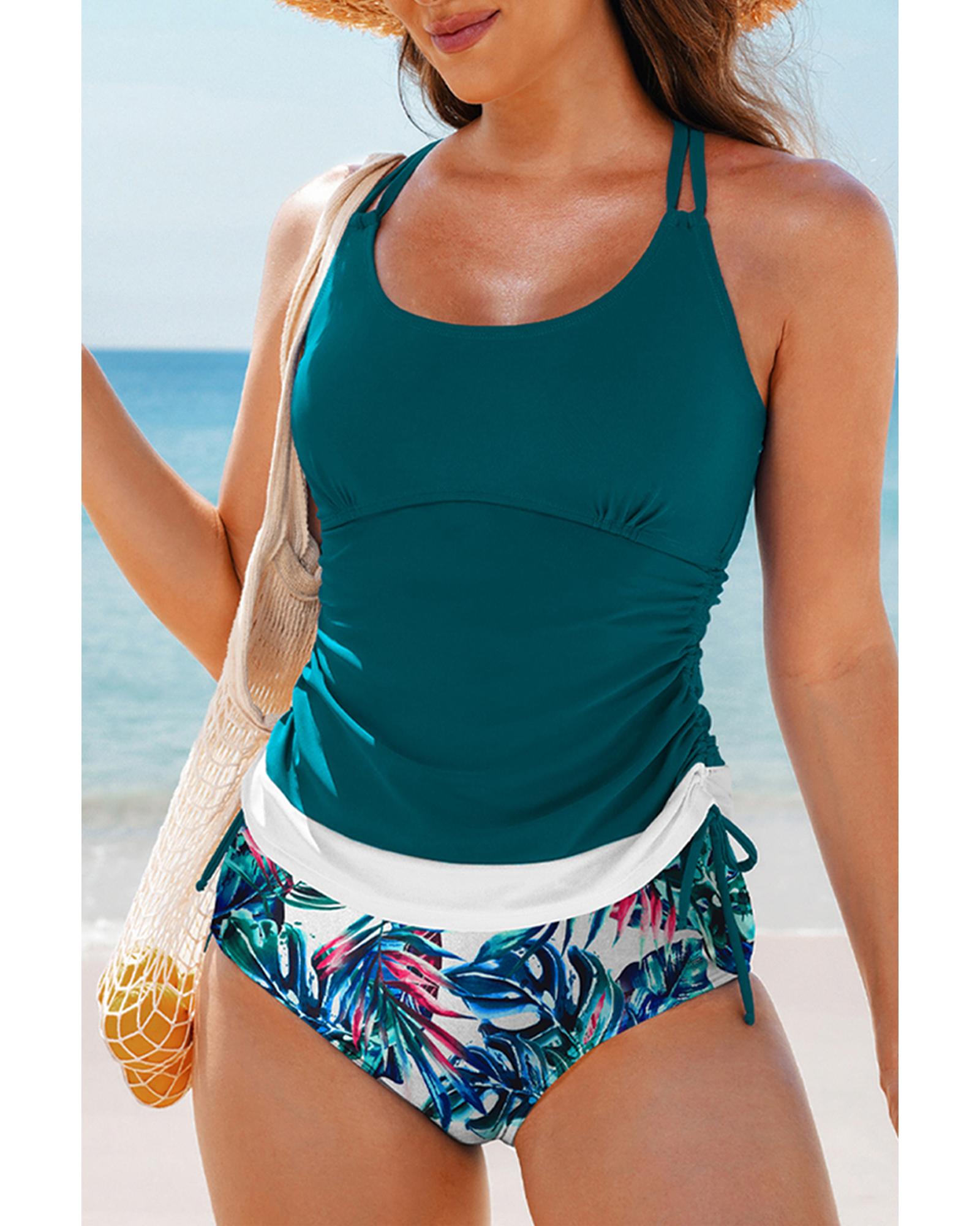 Sea Green Drawstring Tummy Control Mix-and-match 2pcs Tankini Swimsuit – S