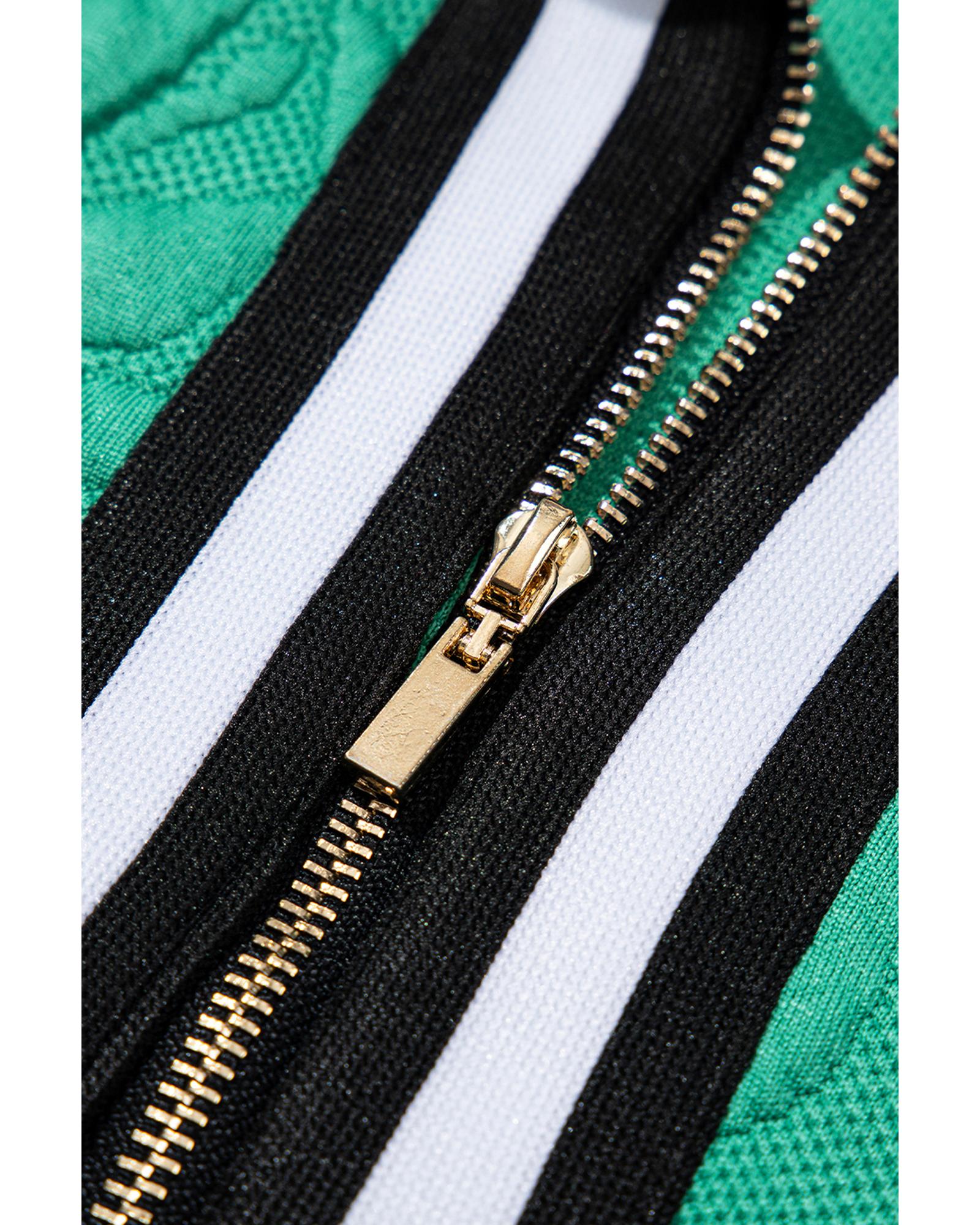 Sea Green Jacquard Textured Quarter Zipper Shift Mini Dress – M