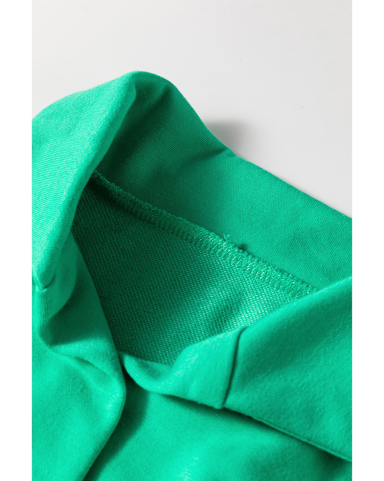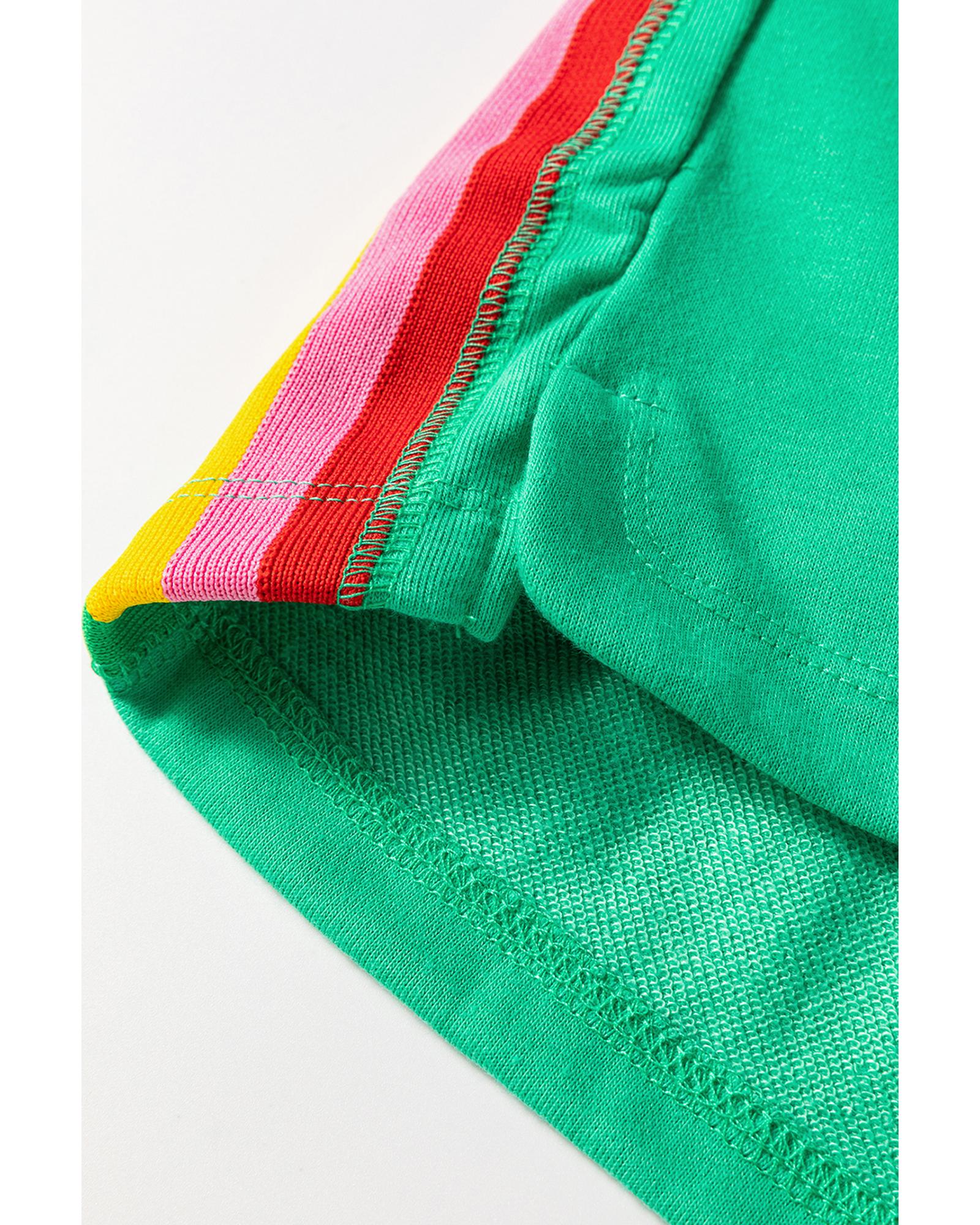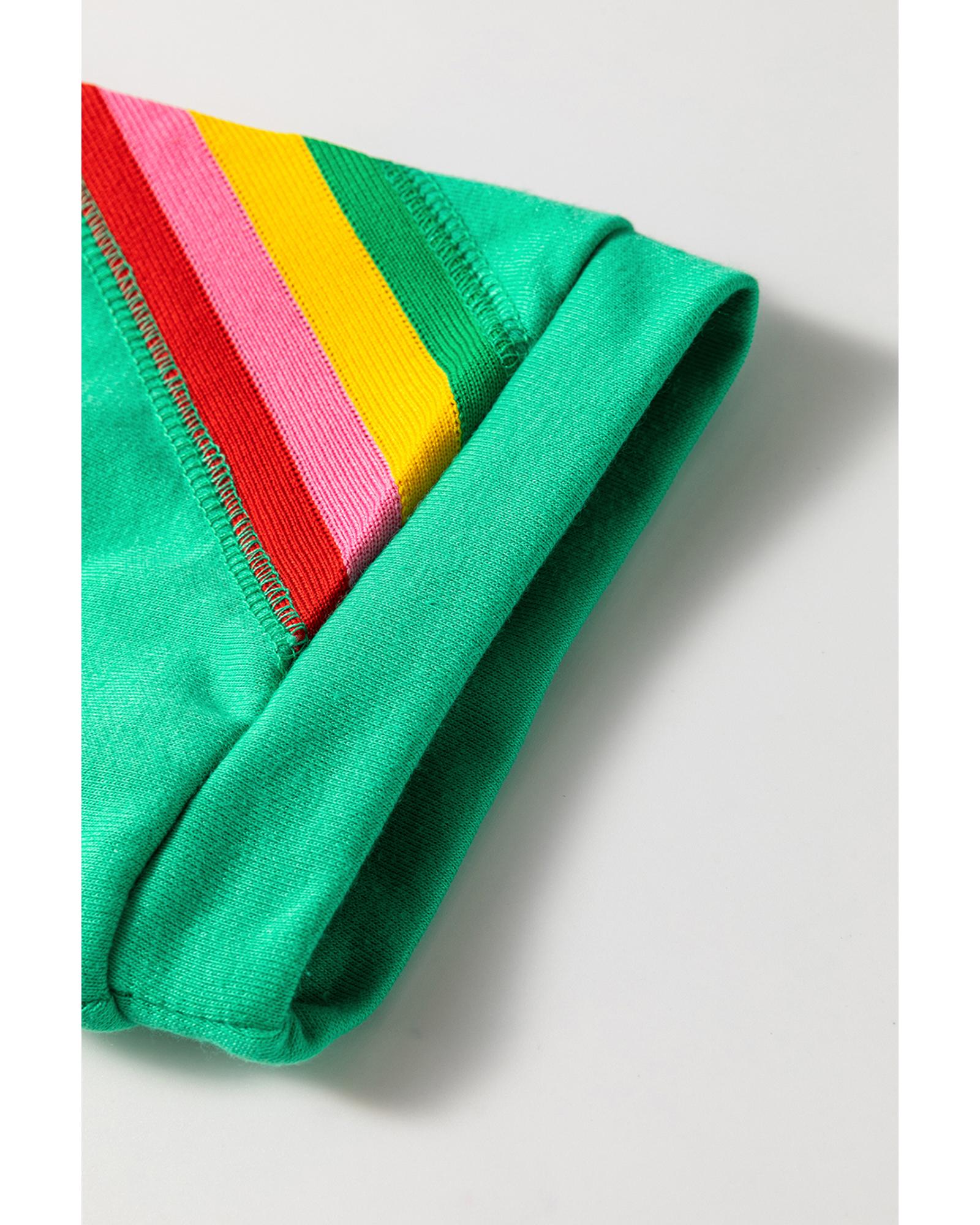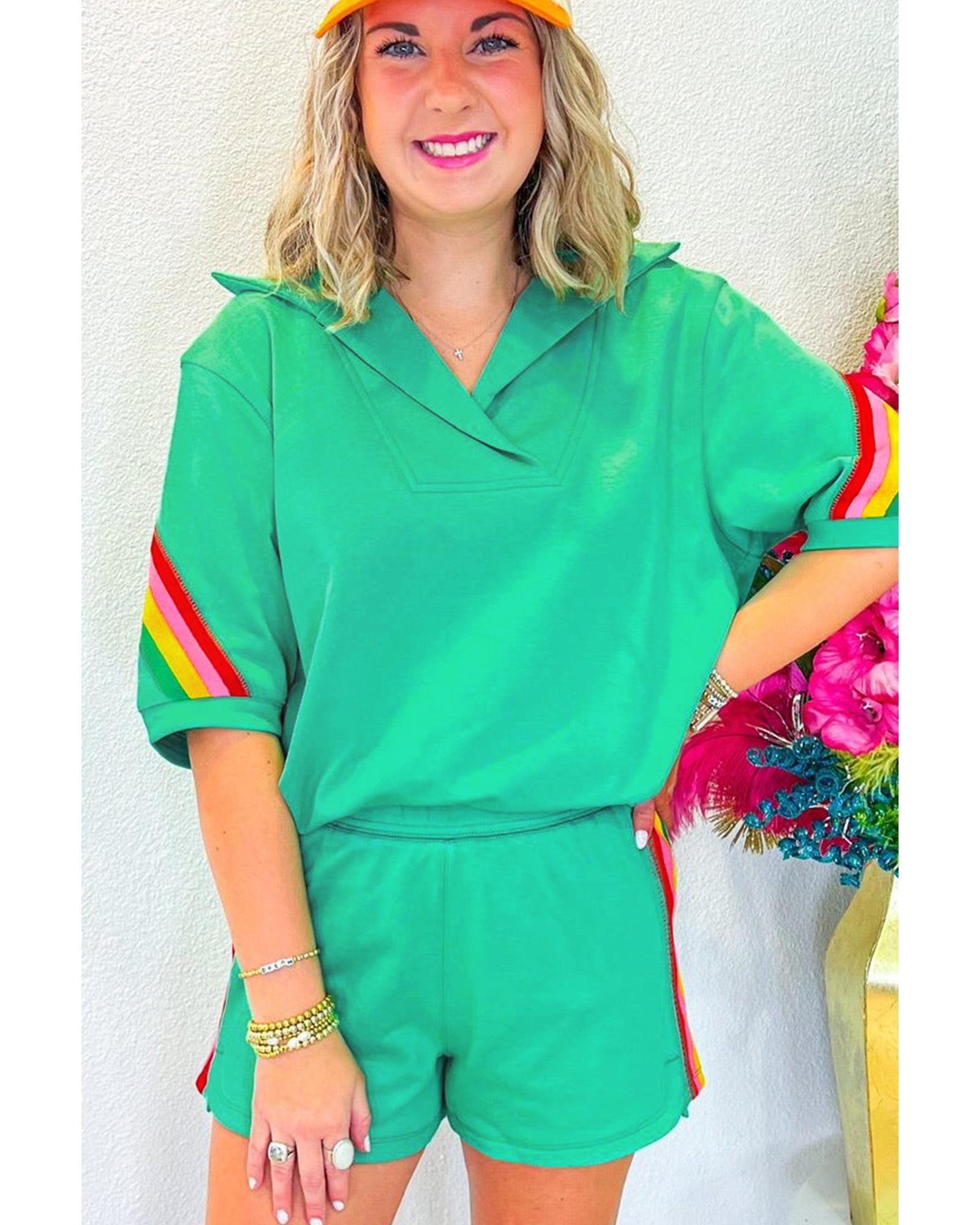 Sea Green Rainbow Colorblock Collared Short Sleeve Top 2 Piece Shorts Set – XL