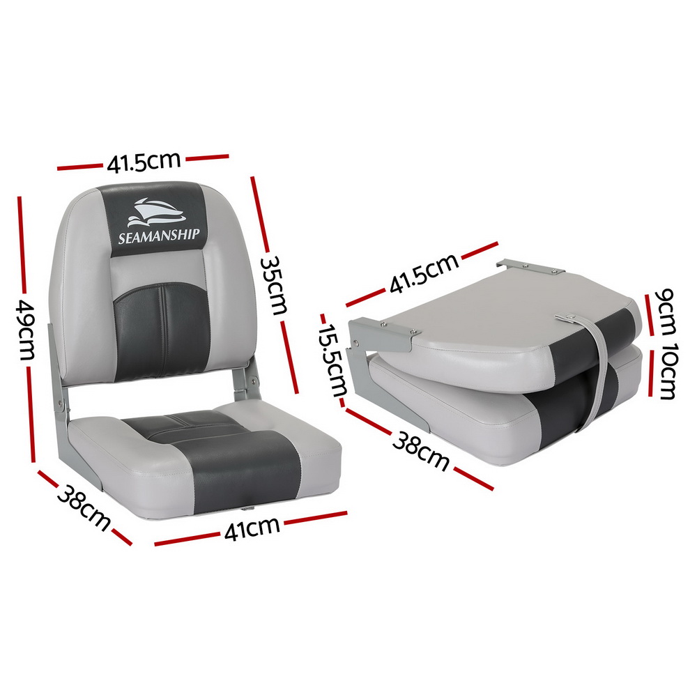 Seamanship 2X Folding Boat Seats Marine Swivel Low Back 10cm Padding Charcoal
