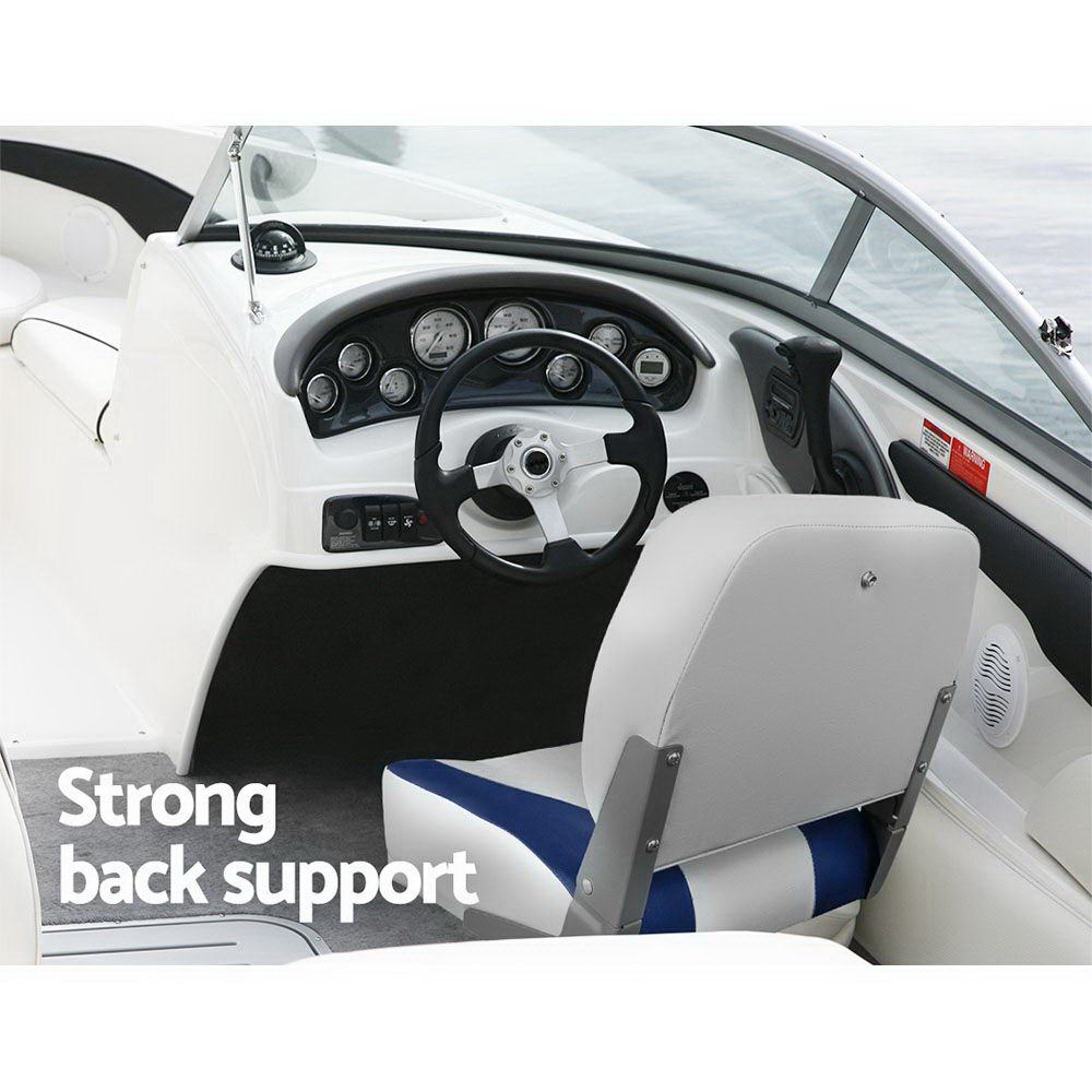 Seamanship 2X Folding Boat Seats Marine Swivel Low Back 13cm Padding Grey Blue