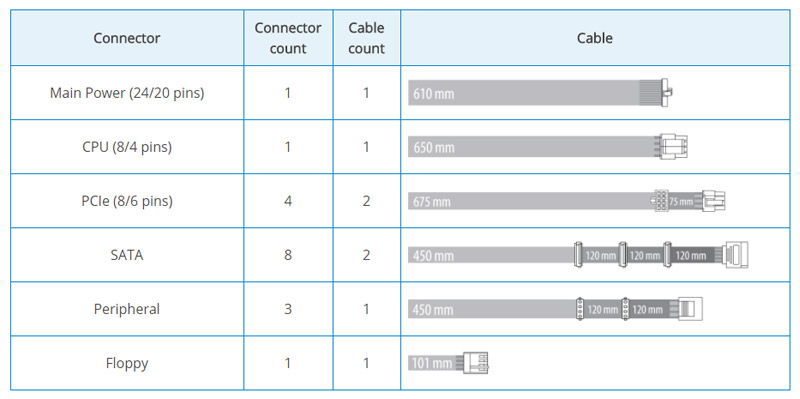 This power supply features a compact design suitable for smaller systems, offering high power density and stable performance. Its fully modular flat black cables facilitate easy installation, space-saving, and customization options. Designed for reliable operation, it provides efficient power delivery and robust protection features.