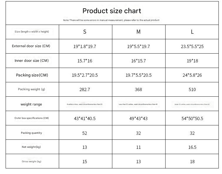 • Size S: Outer Frame 19cm x 20cm x 2.1cm; Inner Flap 14.5cm x 15.5cm