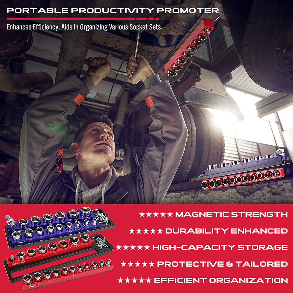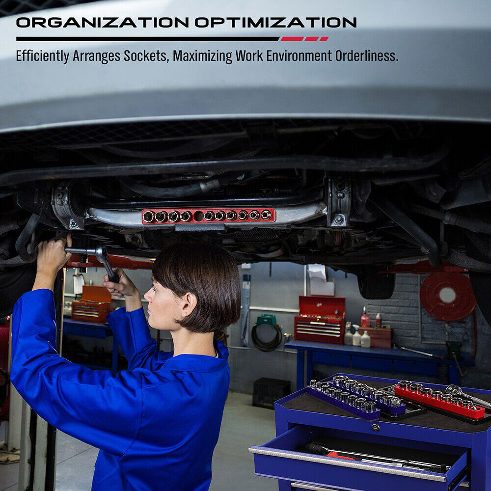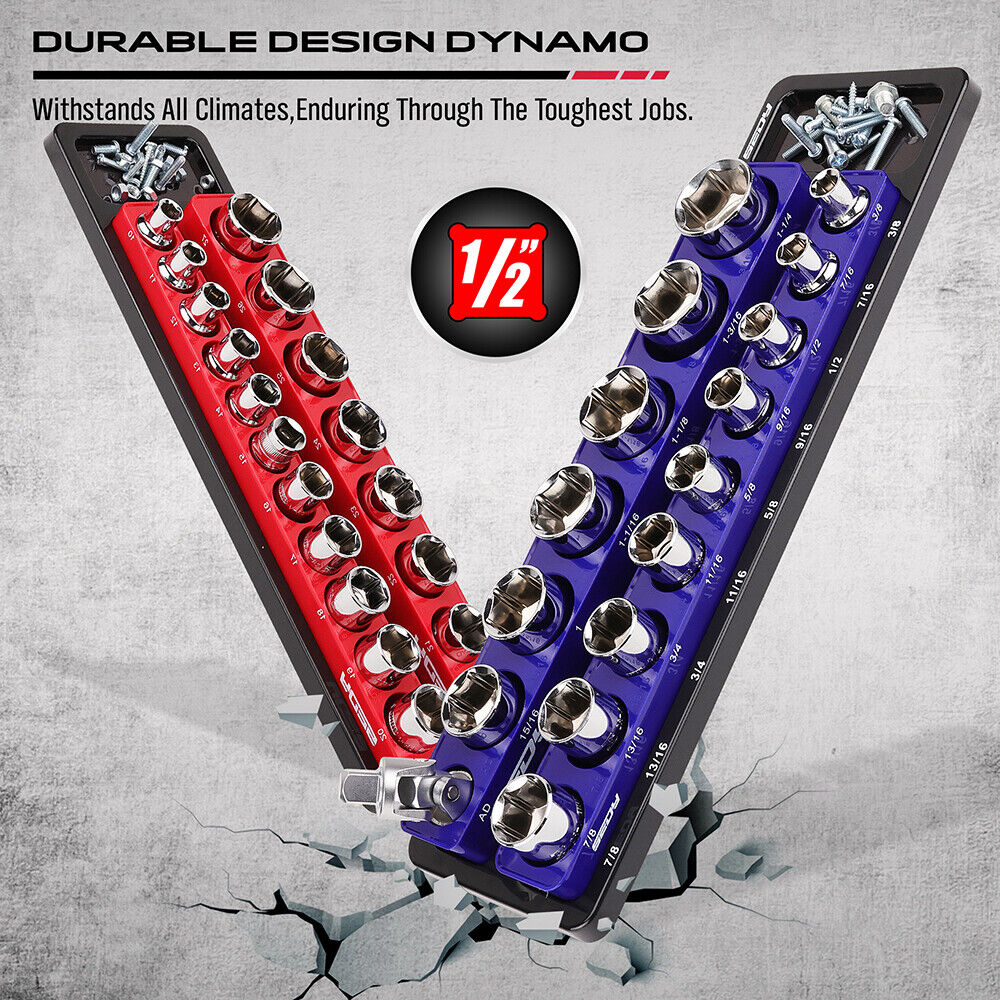 - Specifically designed to fit standard 1/2-inch SAE and metric sockets for a tidy workspace.