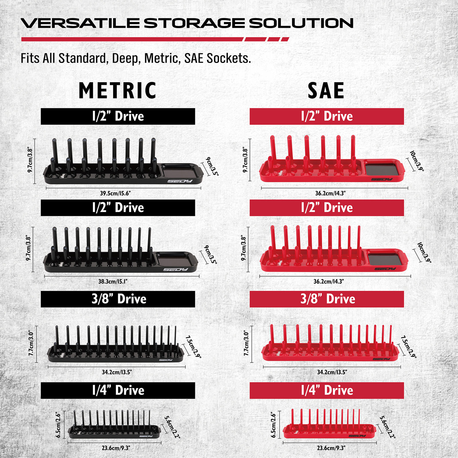 SEDY 8Pcs Magnetic Socket Organizer Tray Metric SAE Sockets Storage Holder Tool