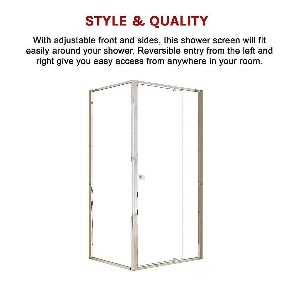 - One semi-frameless shower screen with adjustable front and side panels