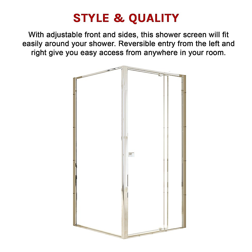 - Semi-frameless shower screen with adjustable front and side panels