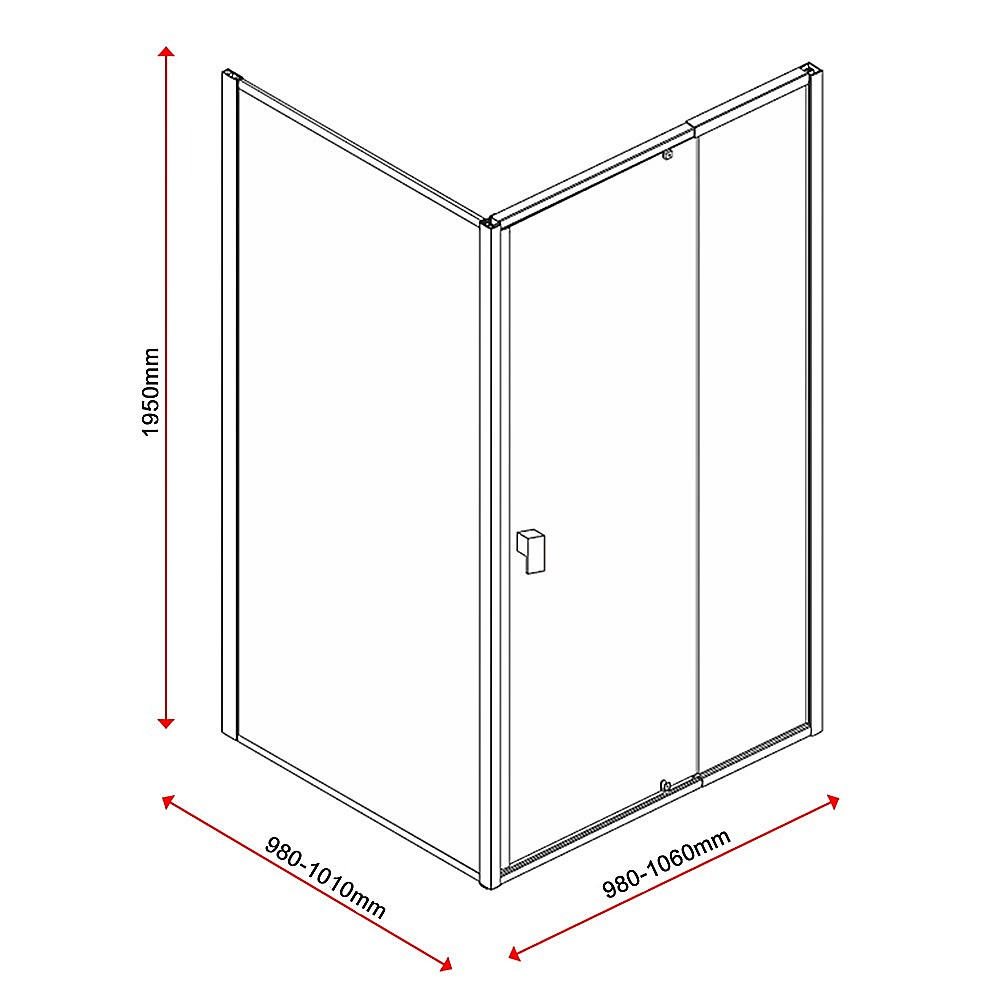 Semi Frameless Shower Screen (98~106)x 195cm & (98~101)x 195cm Side AS/NZS Glass