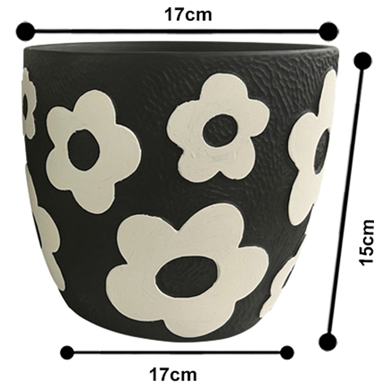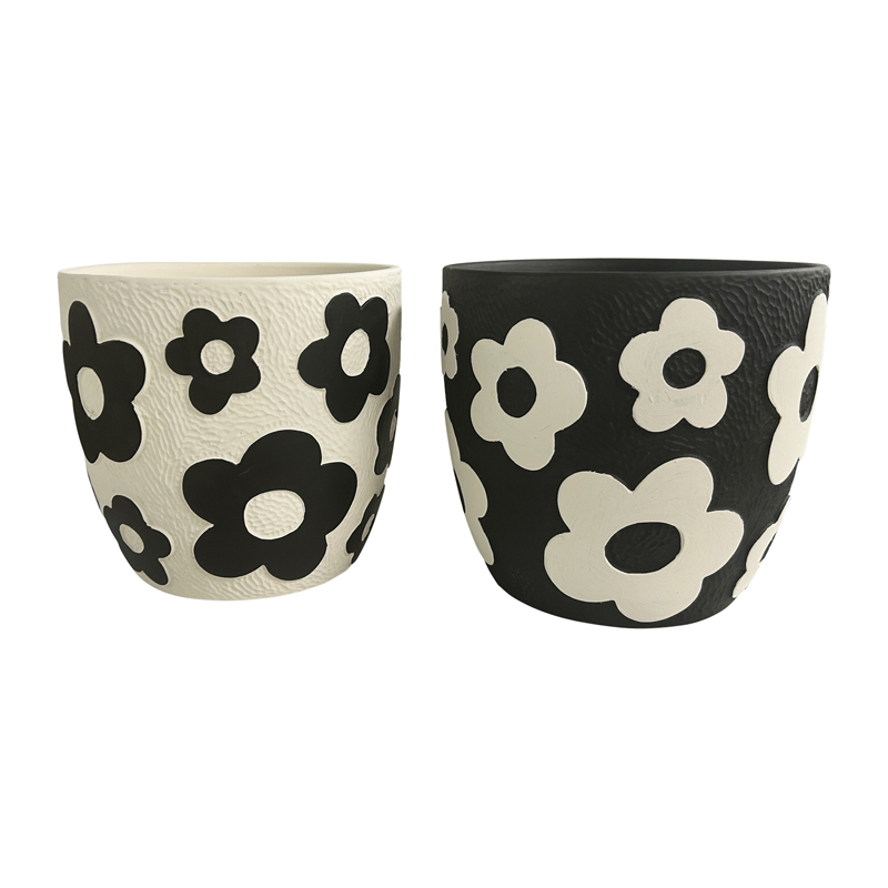 Set 2 Assorted Monochrome Flower Planters w Hole + Plug 17cm