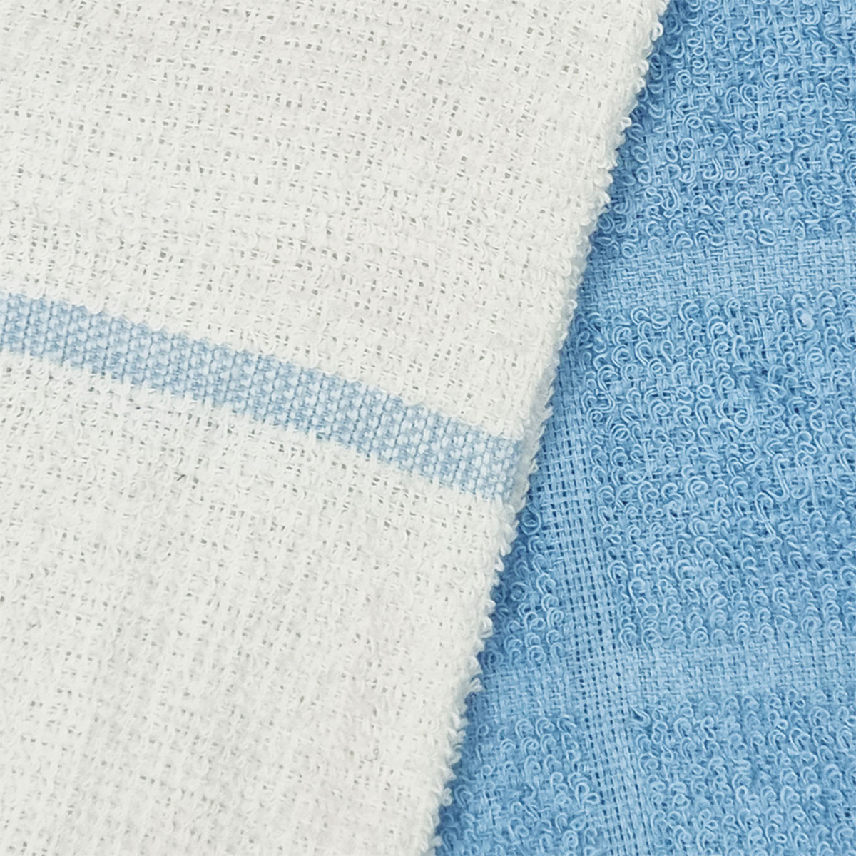 This set of four cotton-rich terry tea towels is designed to enhance your kitchen. Made from a durable polyester cotton blend, these towels are suitable for drying dishes and cleaning spills. Their soft color tones and terry design add a touch of elegance to any kitchen decor.