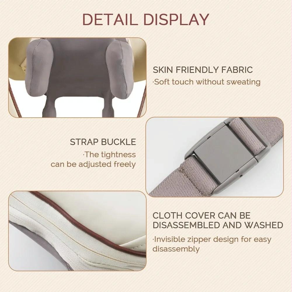 This electric shiatsu neck and shoulder massager is designed to provide deep, relaxing massage therapy with heat. It features an upgraded design with multiple massage heads, offering a larger massage area. The device can be worn in two different ways for adjustable comfort and hands-free operation. It is scientifically engineered to target different body parts with various massage techniques, helping to relieve muscle tension and promote relaxation. The massager includes a large hot compress area, an intelligent 10-minute timer to prevent overuse, and wireless charging for added convenience. Its noise reduction technology ensures a gentle massage experience without disturbing others. The textured leather surface provides a soft and skin-friendly feel for comfortable use.