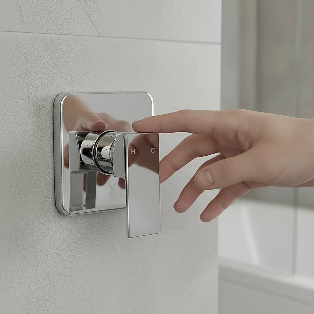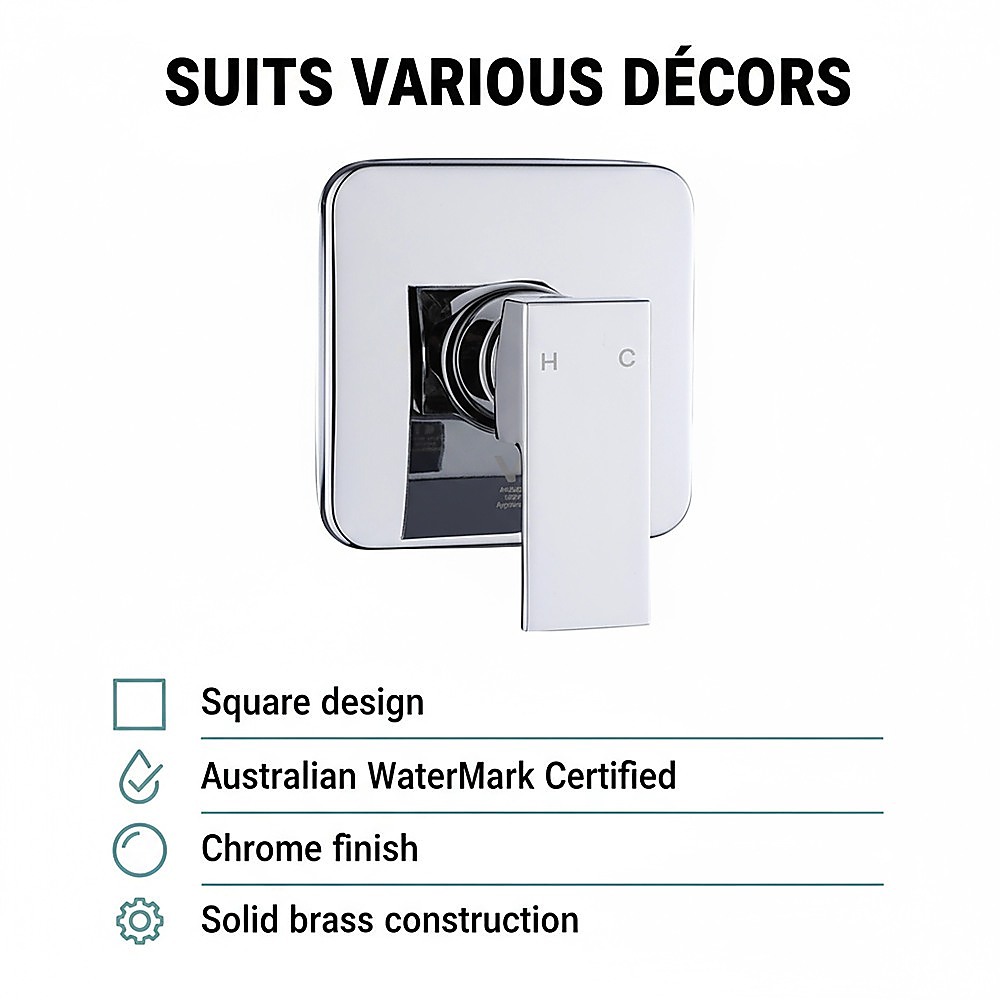 This shower and bath mixer tap features a sleek, square design that enhances the aesthetic of any bathroom. Crafted with durable materials and finished in a polished chrome, it offers both style and longevity. The mixer is designed to provide reliable performance and easy control for your shower or bath needs.