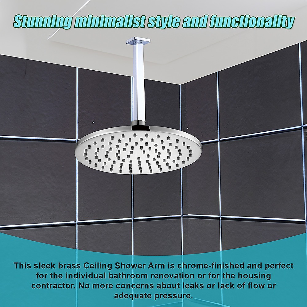 This shower head arm wall connector features a sleek square design, providing a modern and minimalist aesthetic for your bathroom. Made from durable brass, it offers corrosion resistance and long-lasting performance. Suitable for rainfall showerheads, it ensures even water distribution and a stable, secure ceiling mount for a clean installation.