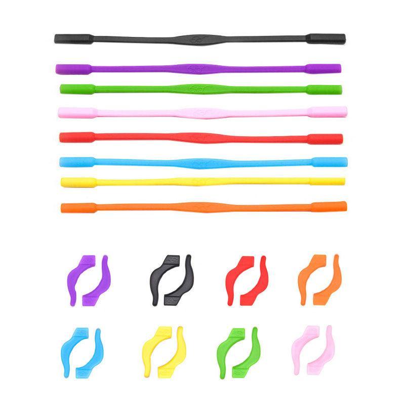 This product is a silicone glasses strap and ear grip set designed to securely hold eyeglasses during various activities. Made from super soft, elastic silicone material, it offers a comfortable fit and can stretch up to 32cm to accommodate different head sizes. Suitable for smaller or youth-sized frames, it is ideal for outdoor sports, gym classes, and other active pursuits.