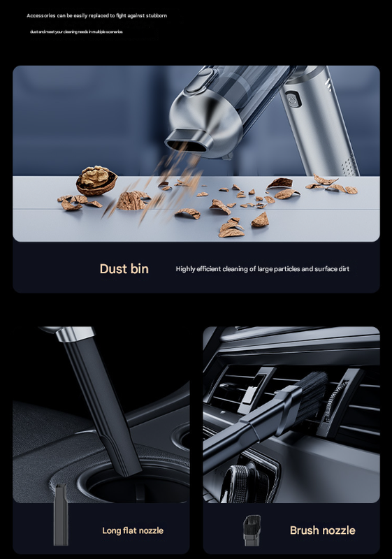 This versatile 4-in-1 cordless handheld vacuum combines powerful suction, blowing, inflating, and vacuum sealing functions in a compact design. Suitable for use in cars, homes, and offices, it offers efficient cleaning and inflating capabilities with a lightweight and cordless operation.