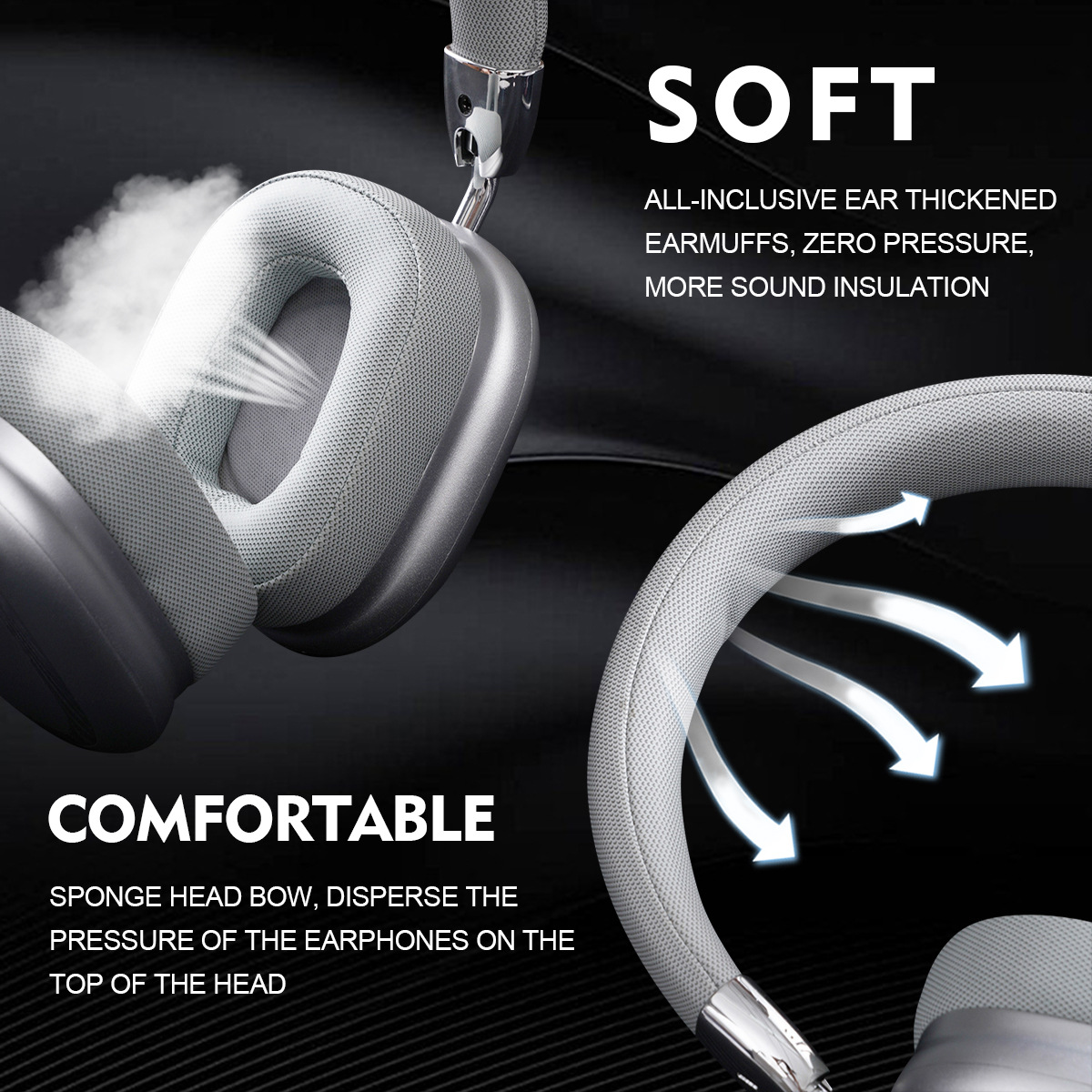 Silver Comfortable Bluetooth Over-Ear Headphones – Soft Earmuffs, Foldable Design, Stereo Sound