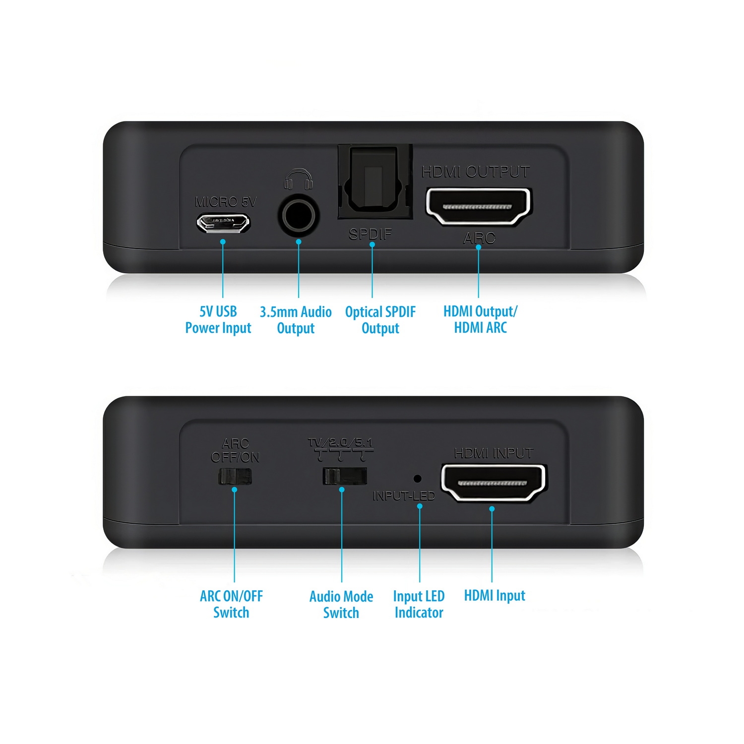 - Enables audio extraction from HDMI input or ARC-enabled HDMI source