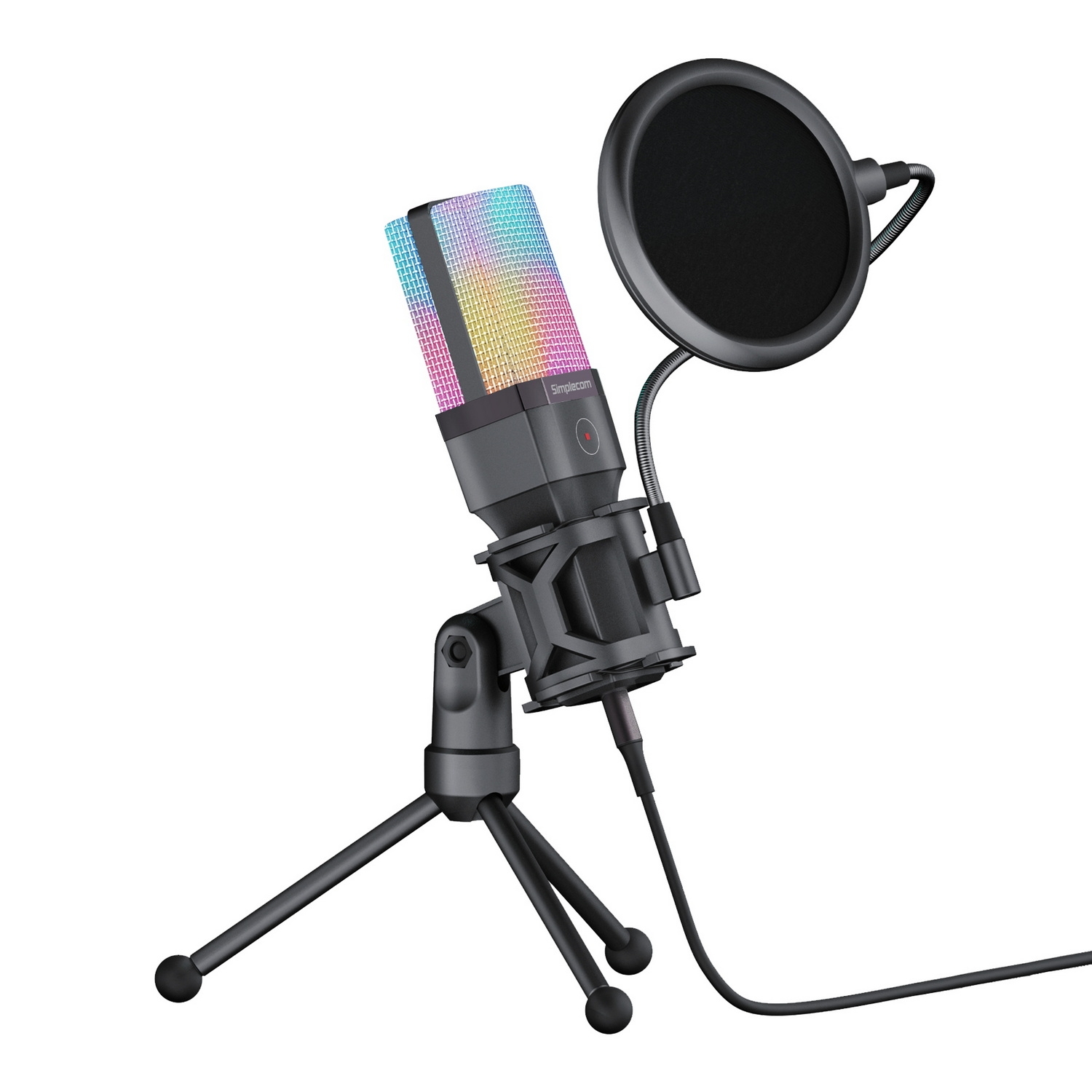 Simplecom UM650 USB Cardioid Condenser Microphone Gaming RGB Lights with Tripod & Pop Filter
