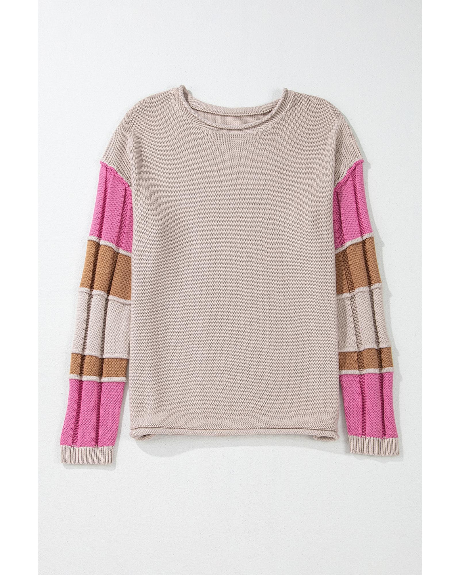 Simply Taupe Colorblock Exposed Seam Round Neck Sweater – M