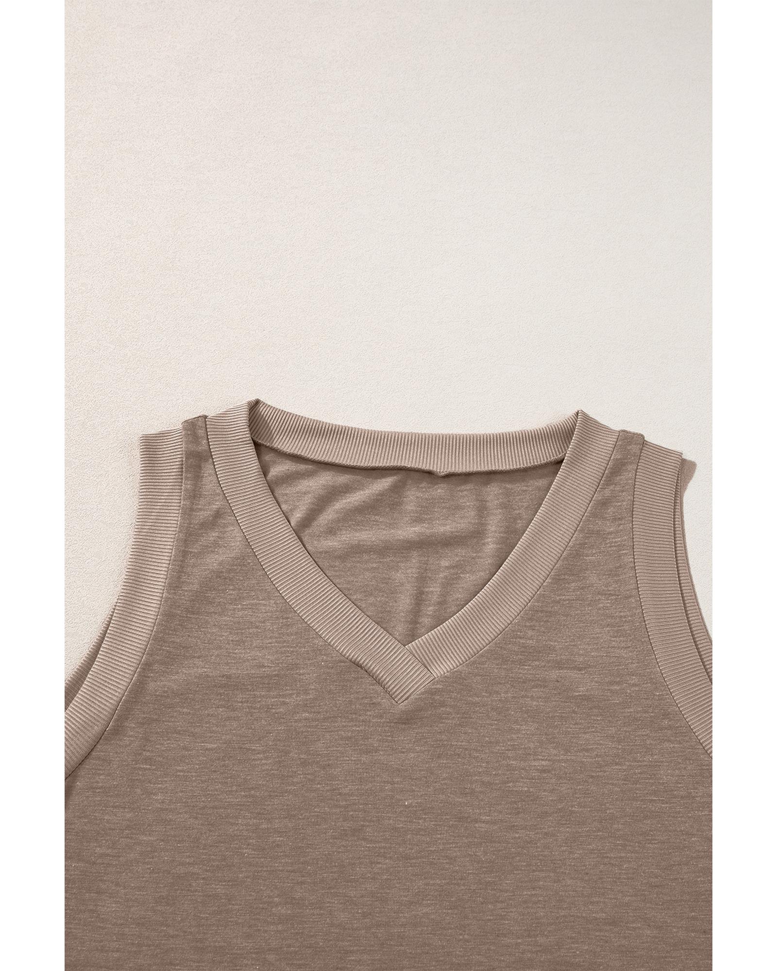 This ribbed V-neck tank top features a trendy fitted design with a sleeveless silhouette, making it a versatile addition to any wardrobe. Crafted from soft and breathable fabric, it offers high elasticity for a comfortable fit. Available in sizes S to XL, it is suitable for various styles and occasions.