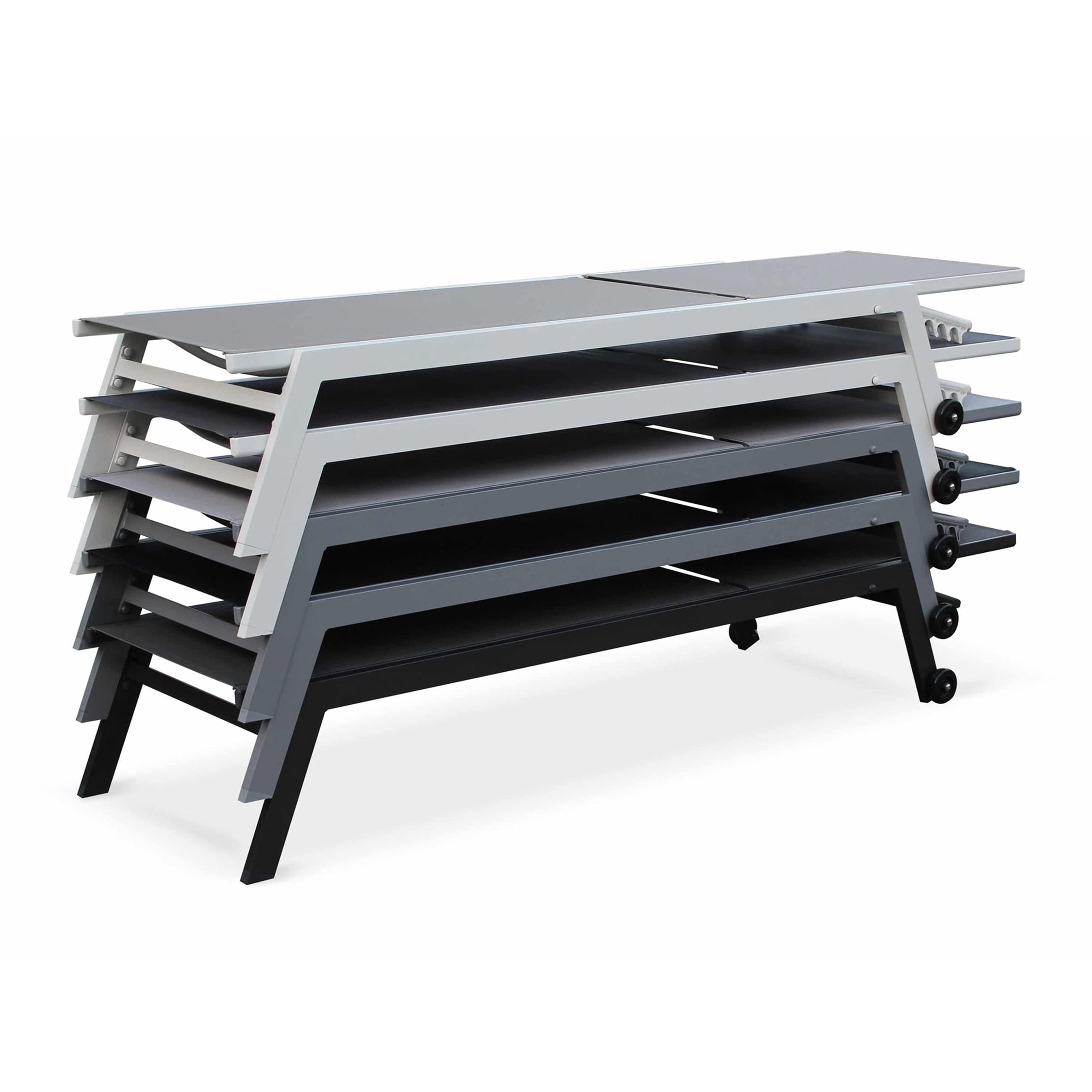 The sunloungers feature an adjustable backrest with five reclining positions, allowing you to customize your comfort. Equipped with smooth wheels, they can be easily moved to follow the sun or change locations. Their lightweight yet sturdy construction makes them easy to handle, and they are stackable for convenient storage.