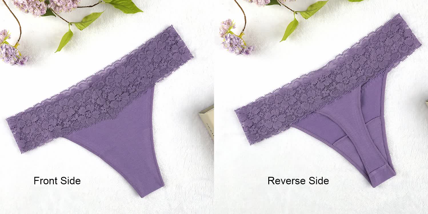 Upgrade your lingerie collection with this set of four lace-trimmed thong underwear. Designed for comfort and style, these thongs feature soft, breathable fabric and a delicate lace waistband, offering a feminine touch. Available in vibrant and neutral colors, this set provides versatility and elegance for everyday wear.