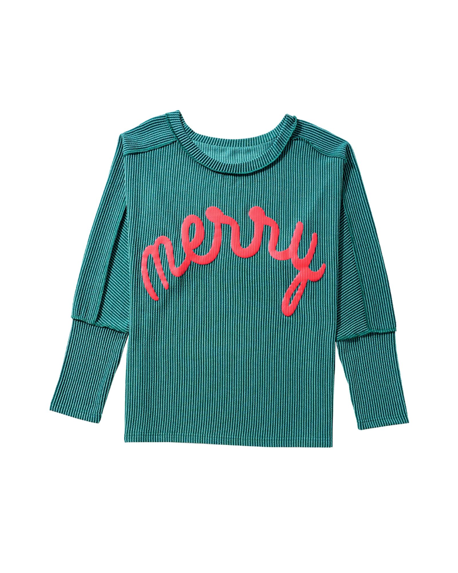 Skobeloff Merry Graphic Corded Batwing Sleeve Knit Top – S