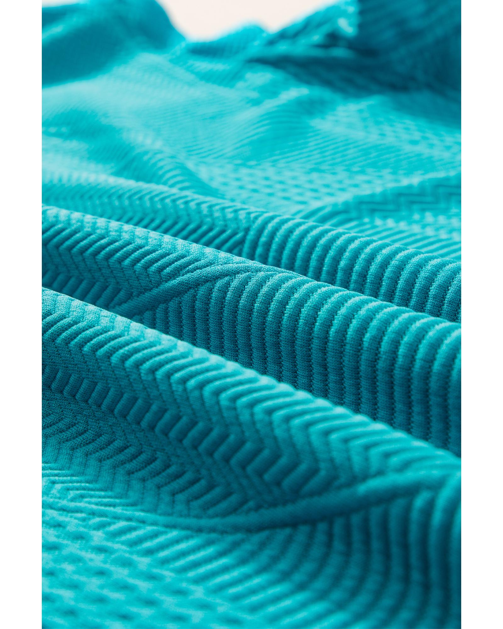 This stylish two-piece set features a textured ruffle split top and comfortable drawstring shorts, perfect for casual occasions. Designed with a trendy fitted look, it offers versatile wear and can be paired with other wardrobe staples for various looks.