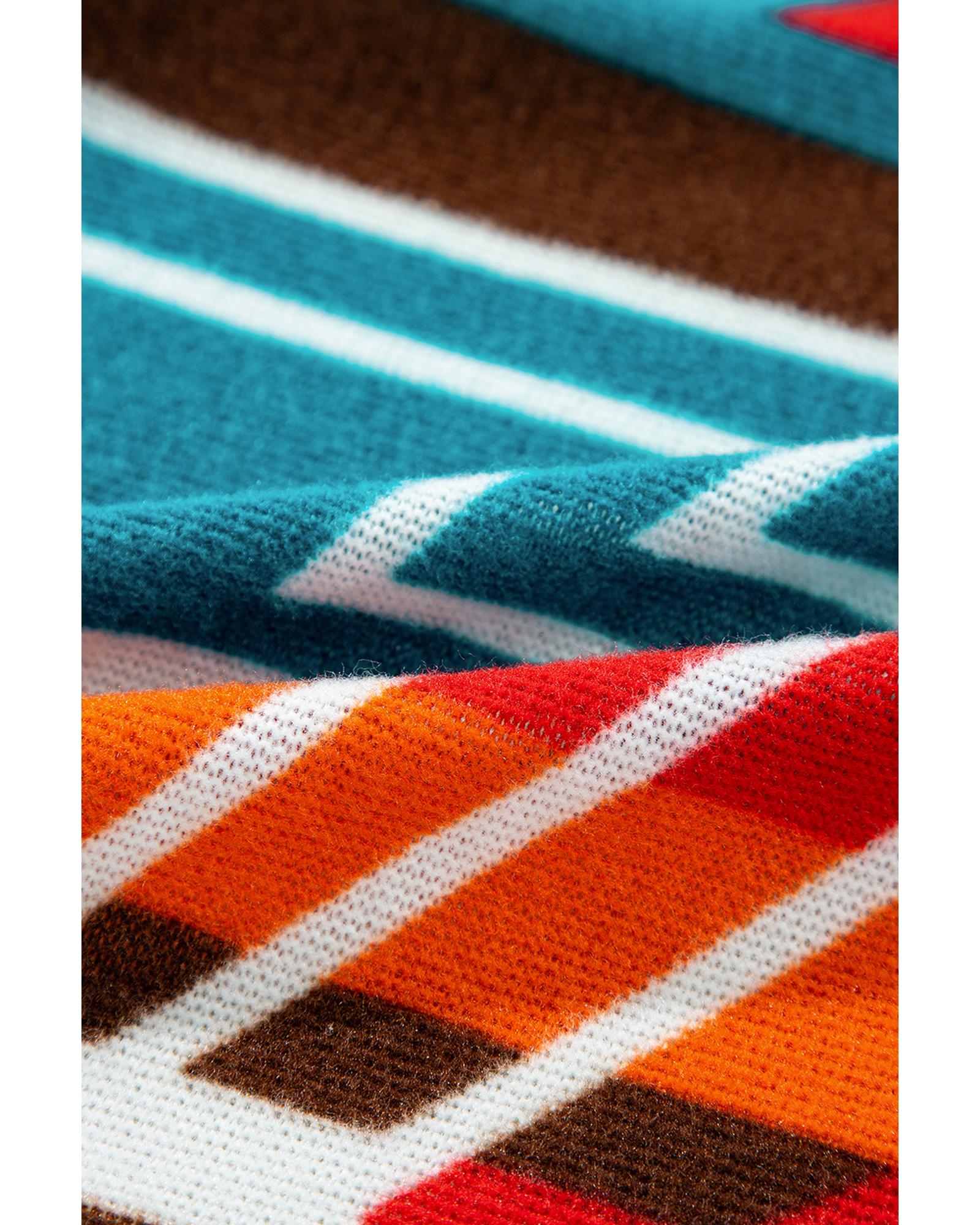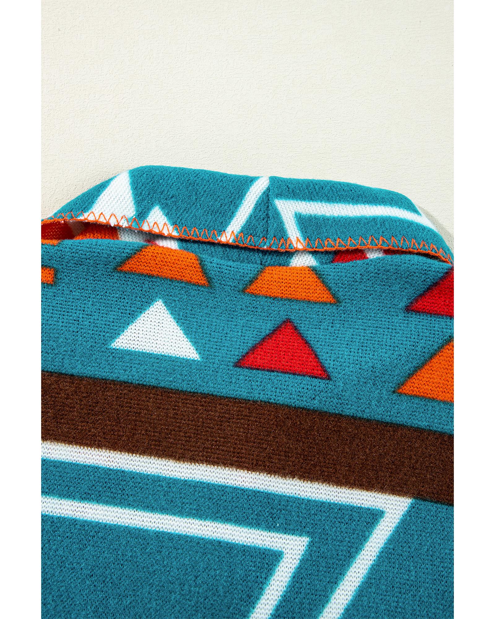This stylish jacket features a vibrant aztec print and a trendy design, making it a perfect addition to your wardrobe for a chic and boho-inspired look. It combines a sophisticated lapel collar with fashionable bell sleeves and an open front, offering versatile layering options for various outfits.