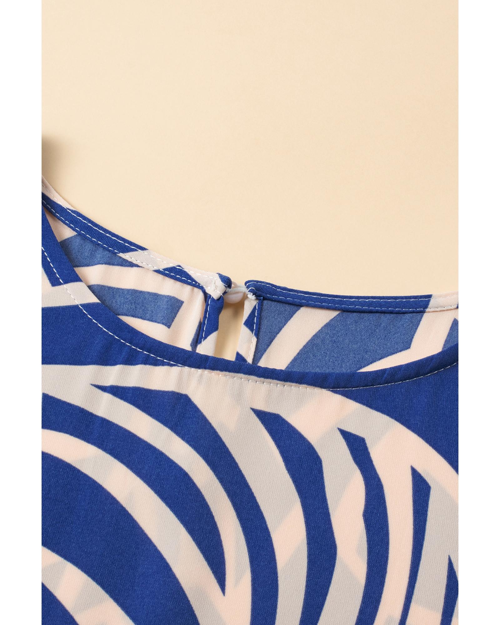 Sky Blue Boho Printed Short Sleeve Flare Tiered Dress – S