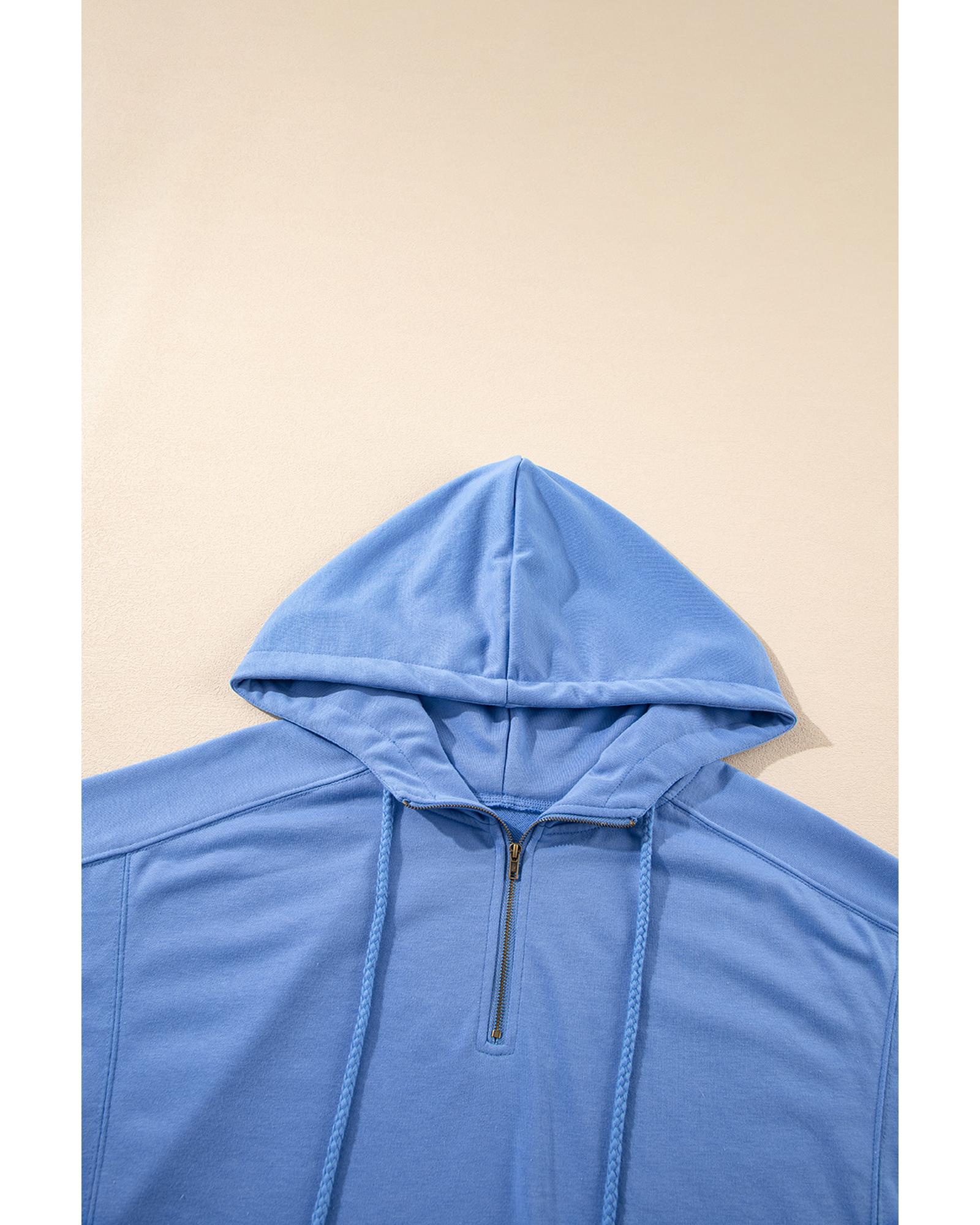 Sky Blue Casual Zipped Short Sleeve Hoodie and Shorts Set – S