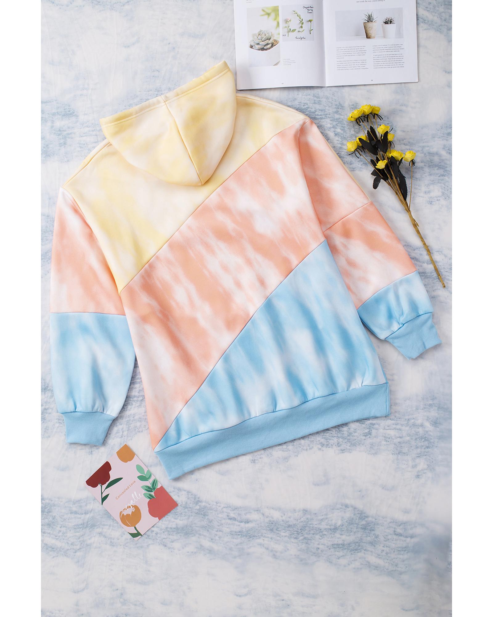 Sky Blue Colorblock Kangaroo Pocket Plus Size Hoodie – 3X