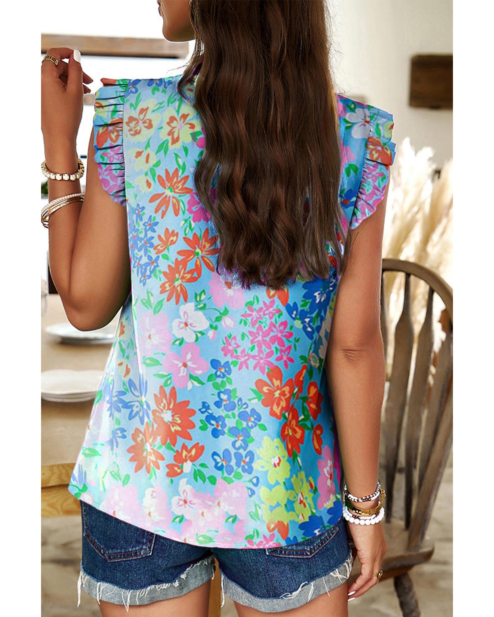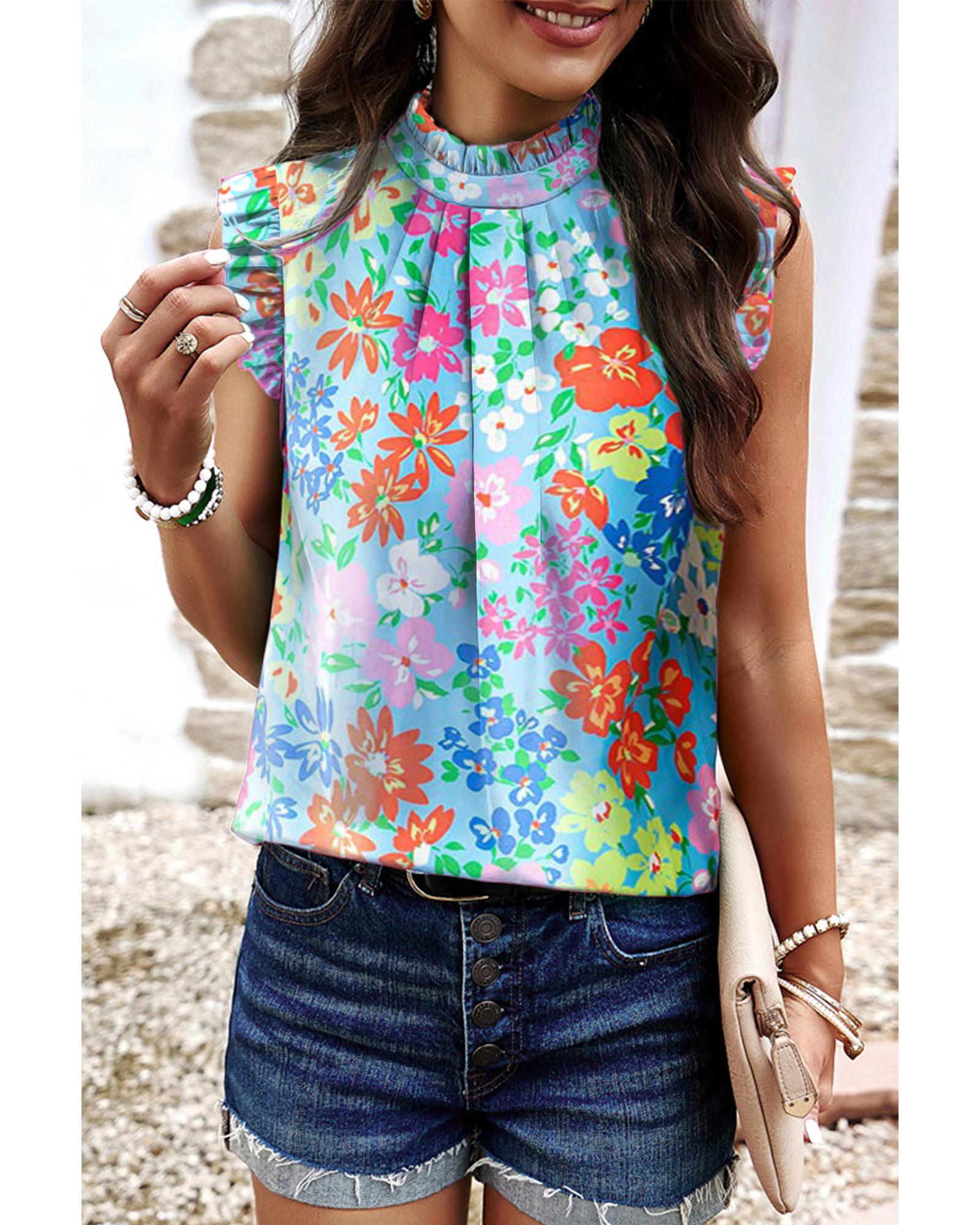 - 1 x Sky Blue Frilled Collar Floral Vest
