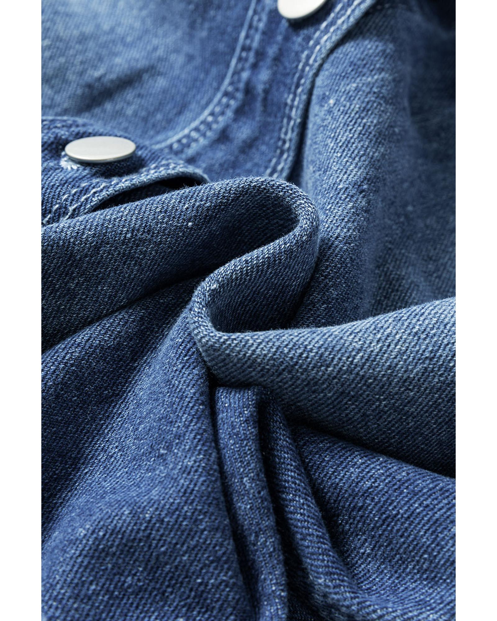 Prussian Blue Mineral Wash Knotted Strap Patched Pocket Wide Leg Denim Overalls - S