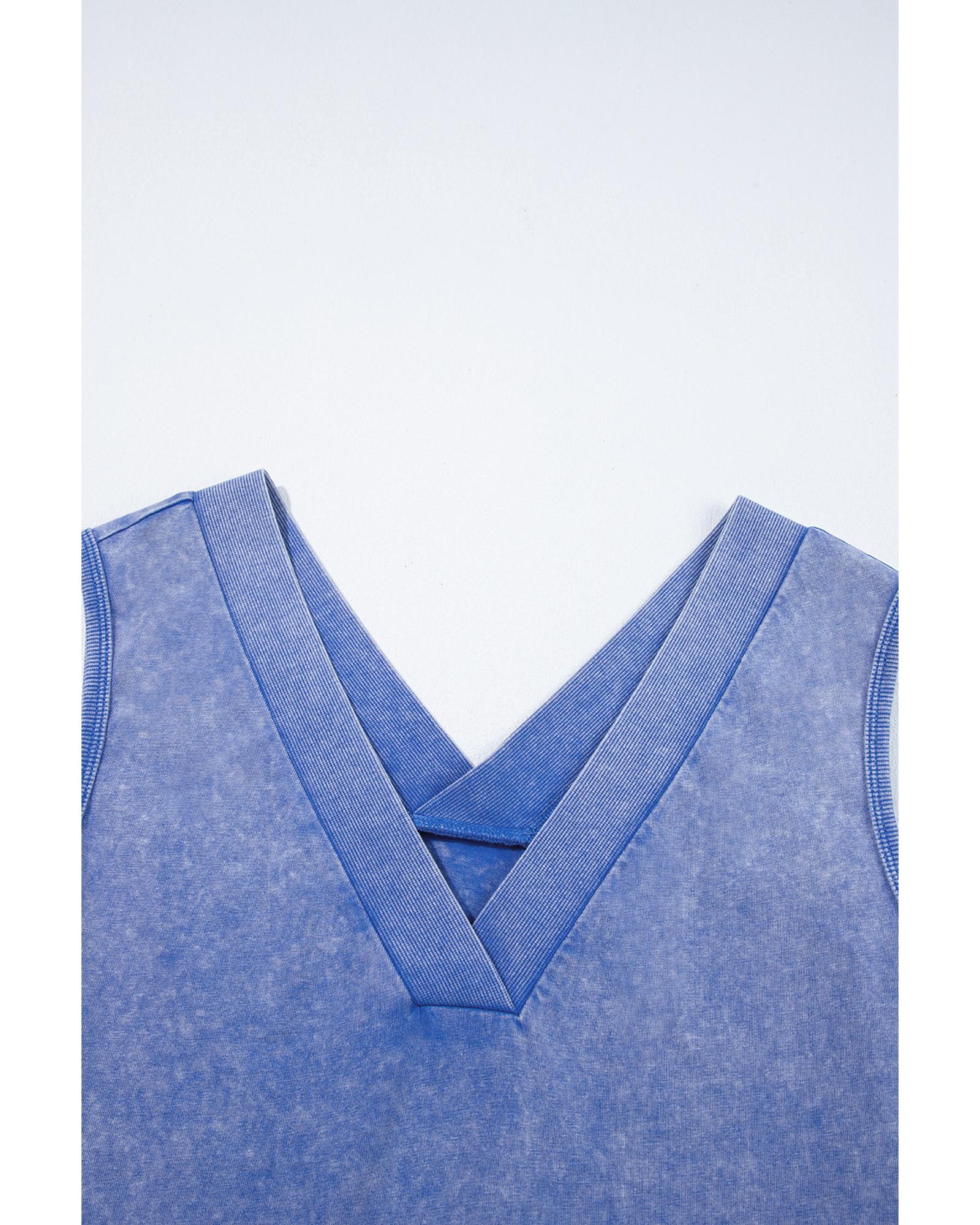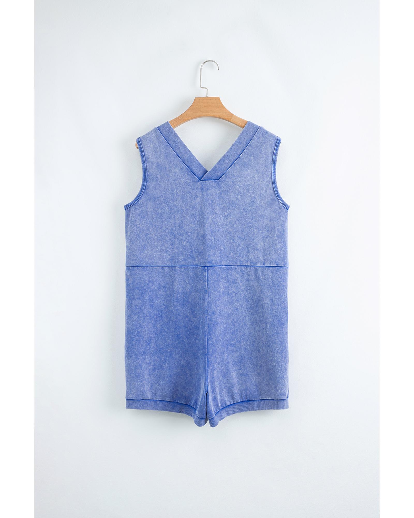 Sky Blue Mineral Wash Pocketed Sleeveless V Neck Loose Romper – XL