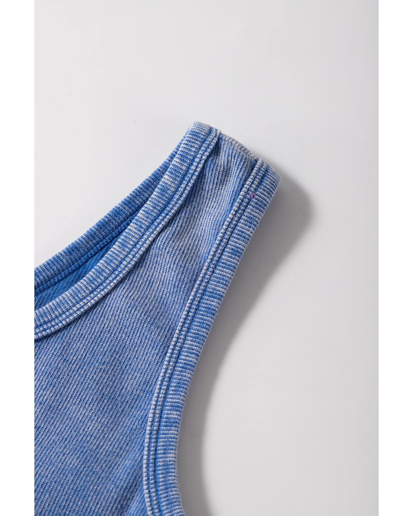Sky Blue Mineral Wash Ribbed Notch Neck Tank Top – M