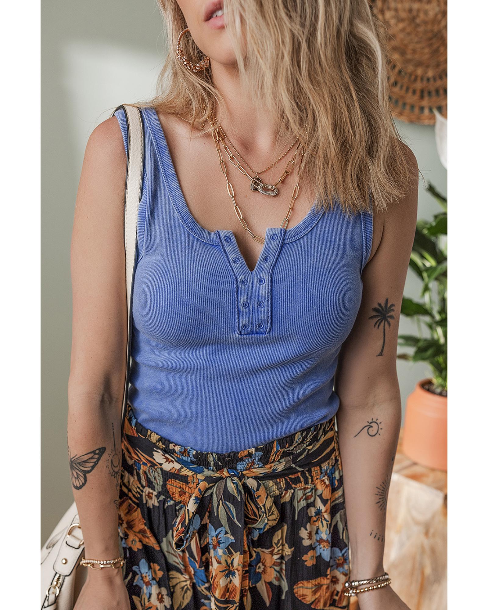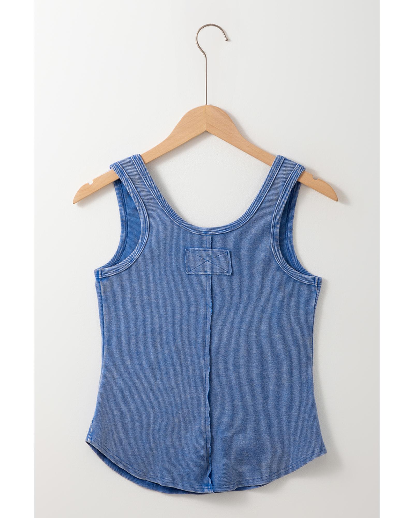 Sky Blue Mineral Wash Ribbed Notch Neck Tank Top – S