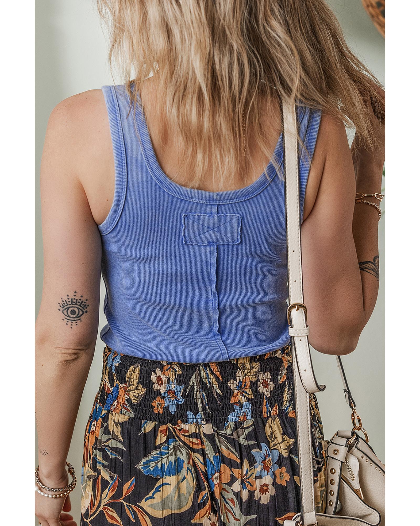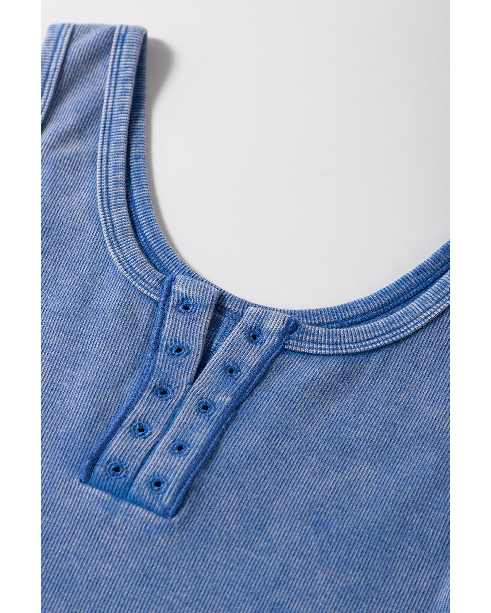 Sky Blue Mineral Wash Ribbed Notch Neck Tank Top – XL