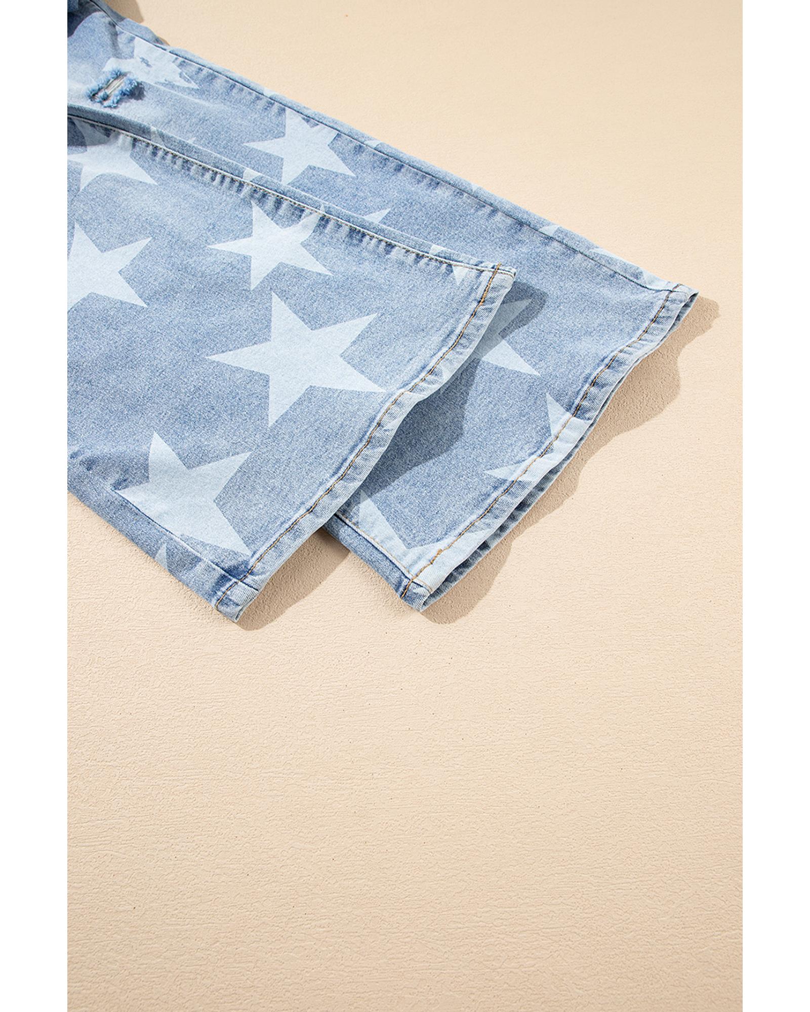 Sky Blue Star Printed Multi Buttons Slit Knee Destroyed Plus Size Jeans – 4X