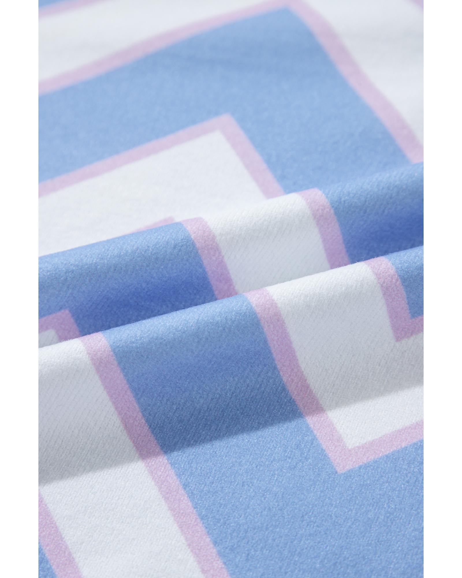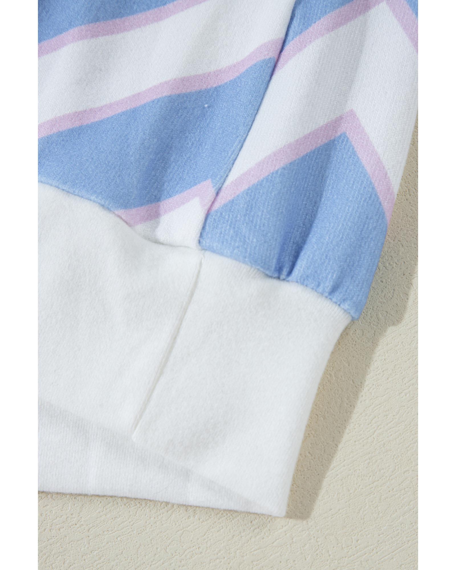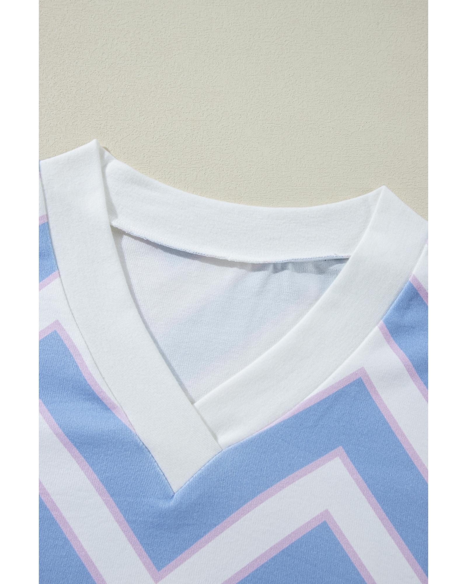 Sky Blue Zigzag Striped Print V Neck Oversized Top – S