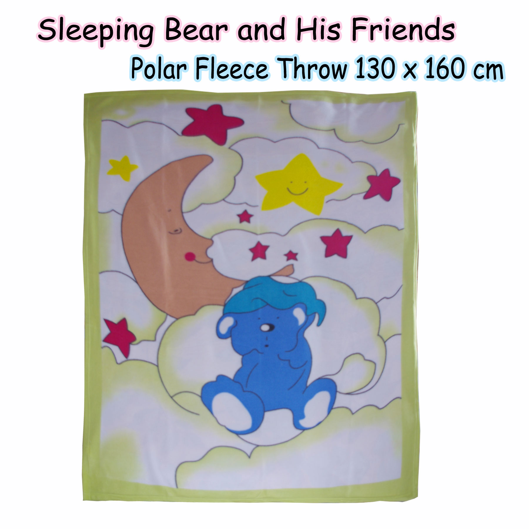 This polar fleece throw features a charming design with a sleeping bear and his friends, perfect for adding a cute and cozy touch to a child’s bedroom. Made from soft polyester, it offers warmth and comfort with a dreamy theme that appeals to children.