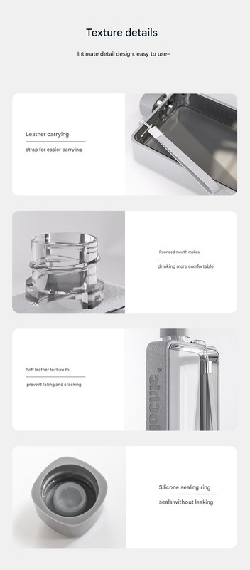 This slim, flat water bottle combines modern design with practicality. Its unique rectangular shape allows for easy storage in bags and briefcases, making it ideal for daily use, travel, or outdoor activities. Made from durable, BPA-free Tritan material, the bottle is transparent and safe for everyday hydration. It features a protective leather-textured sleeve for a comfortable grip and added durability, along with a leakproof cap that ensures spill-free use. The included leather-like strap enhances portability, making it convenient to carry wherever you go.