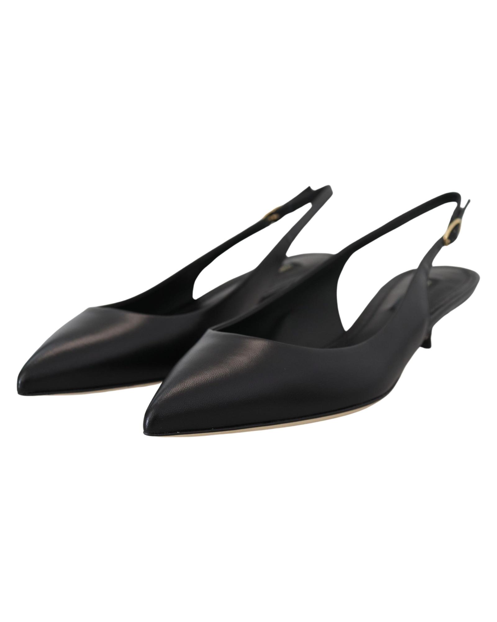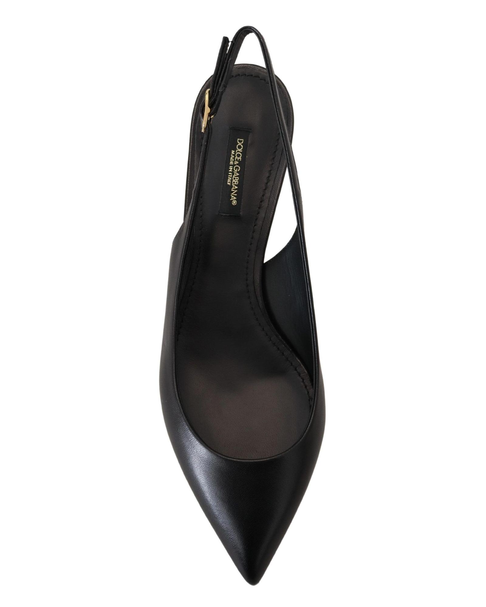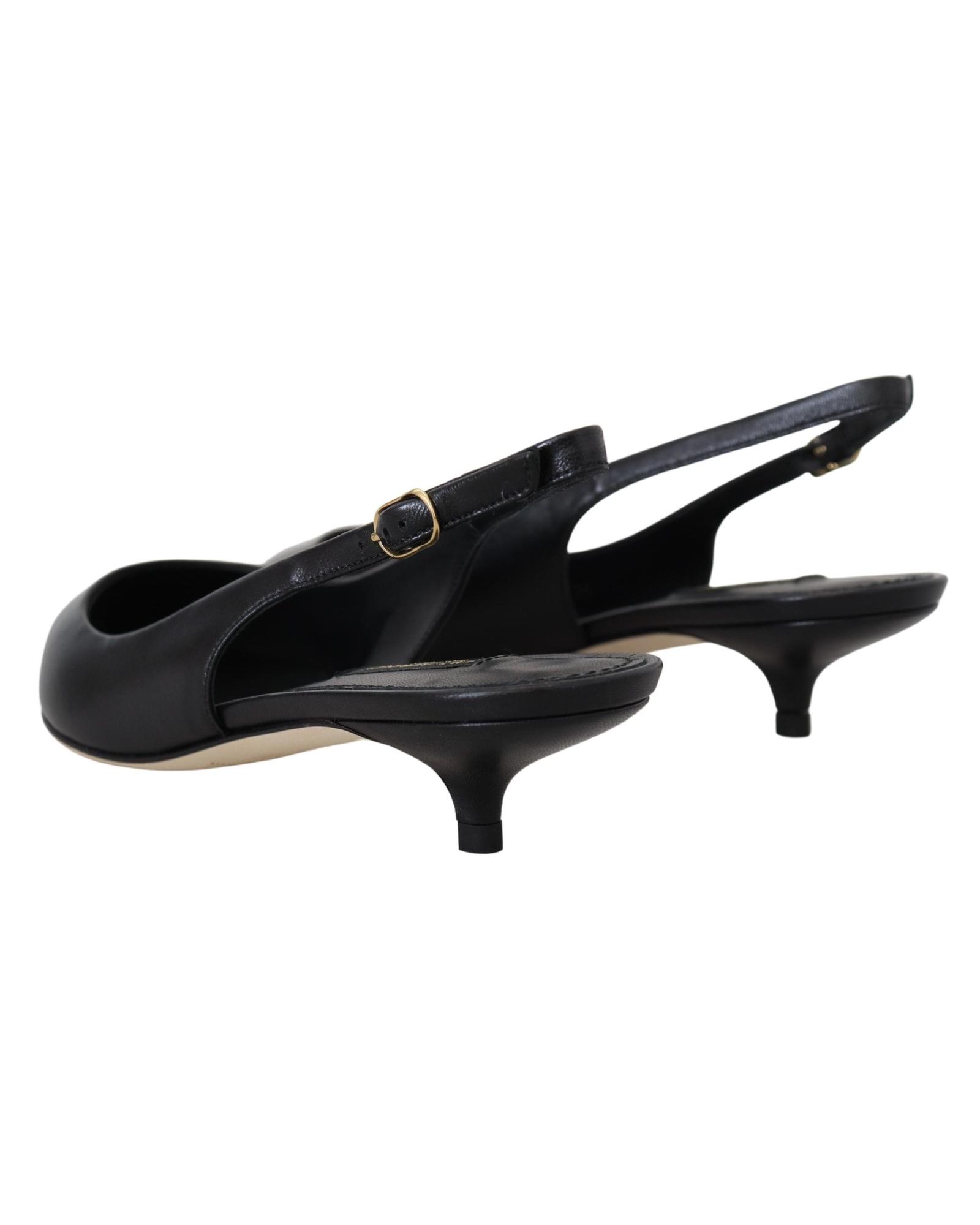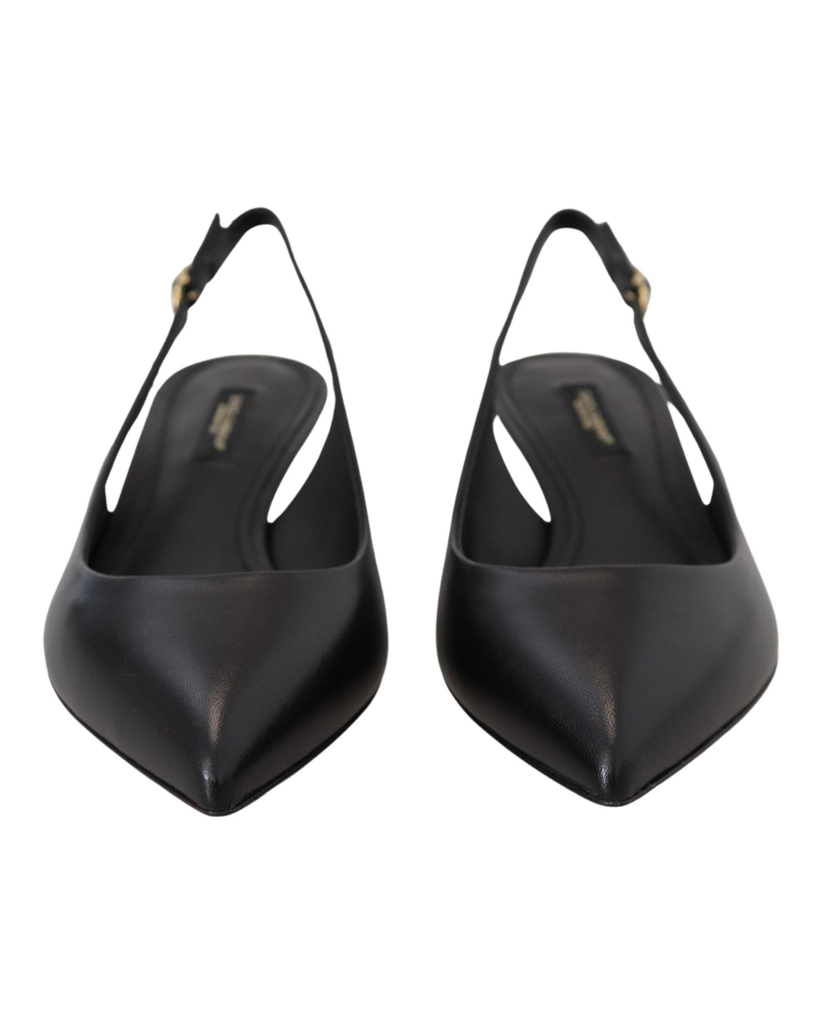 These elegant slingback heels are designed for women seeking a stylish and comfortable footwear option. Crafted with attention to detail, they feature a classic black color and sophisticated logo accents, making them suitable for various occasions.
