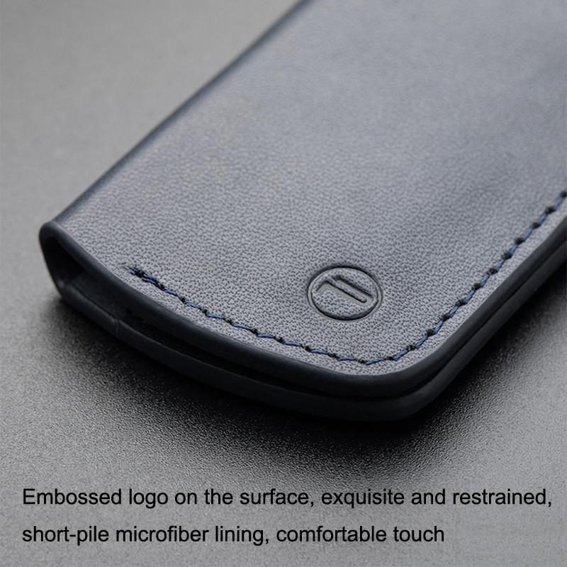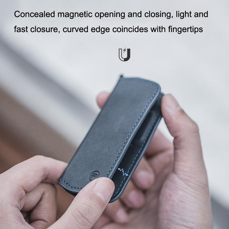 This storage bag offers a simple and elegant design for organizing camera accessories and memory cards. It features multiple slots for SD, TF, and SIM cards, providing a convenient solution for keeping your items secure and accessible. Crafted from high-quality cow leather, it combines durability with a stylish appearance. The bag includes a side hanging ear for easy carrying, an external charging hole for added convenience, and a concealed magnetic closure for quick access.