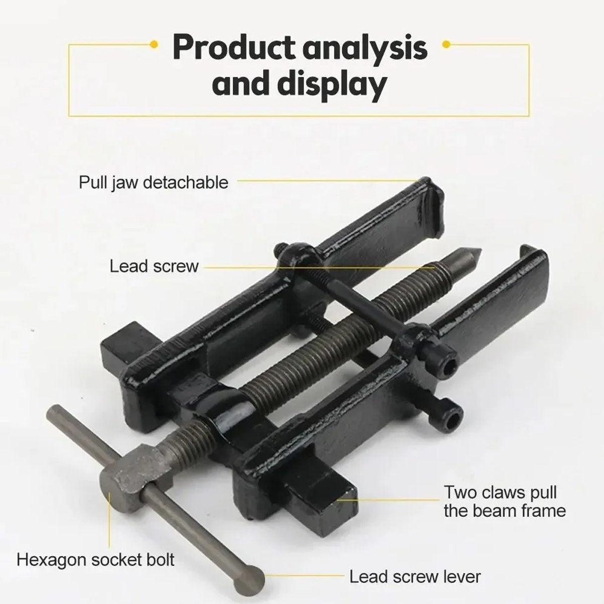 This two-claw bearing puller is a versatile tool designed for easy dismantling of gears, pulleys, and small wheels. It features a simple yet effective design that offers excellent grip and stability while pulling components off shafts. Made from durable high-quality steel, it is suitable for both professional and DIY use, providing long-lasting performance for various applications.