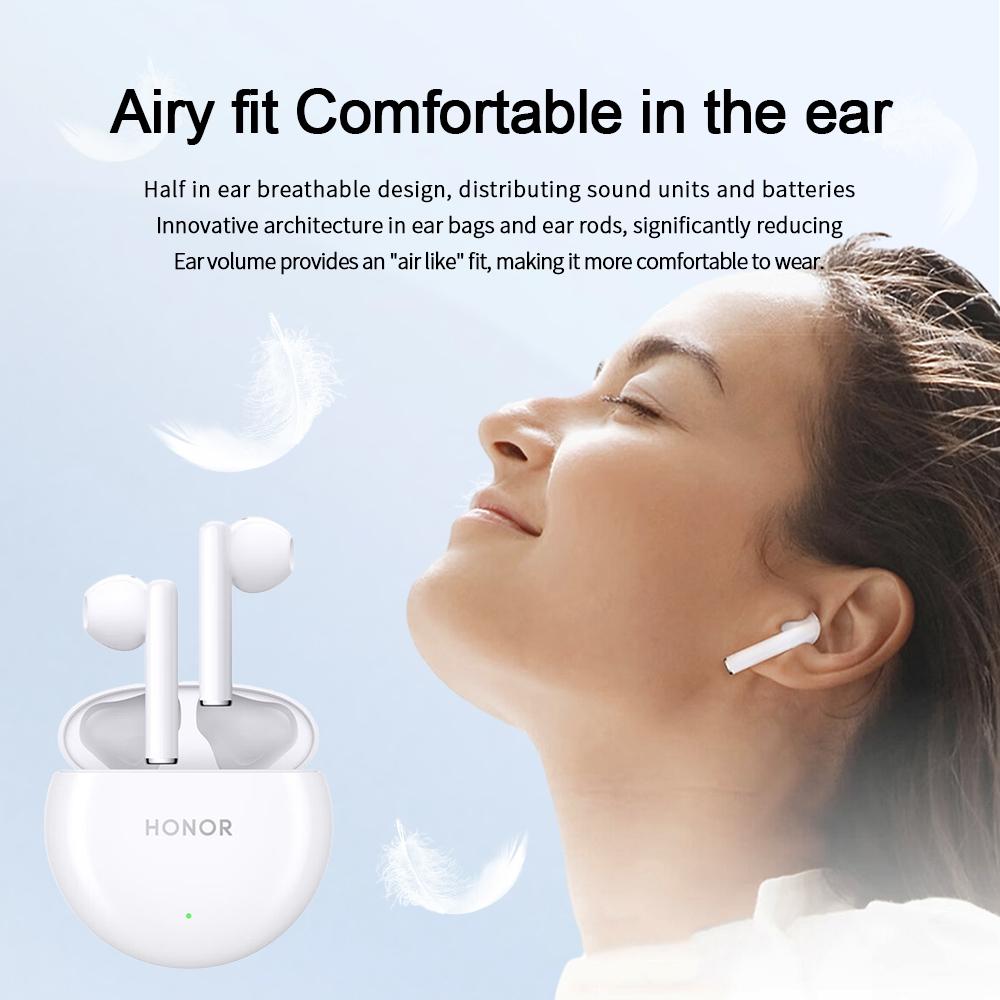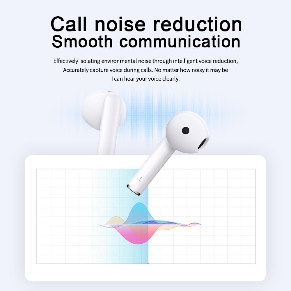 Package includes one pair of semi-in-ear wireless Bluetooth earbuds with noise reduction capabilities.