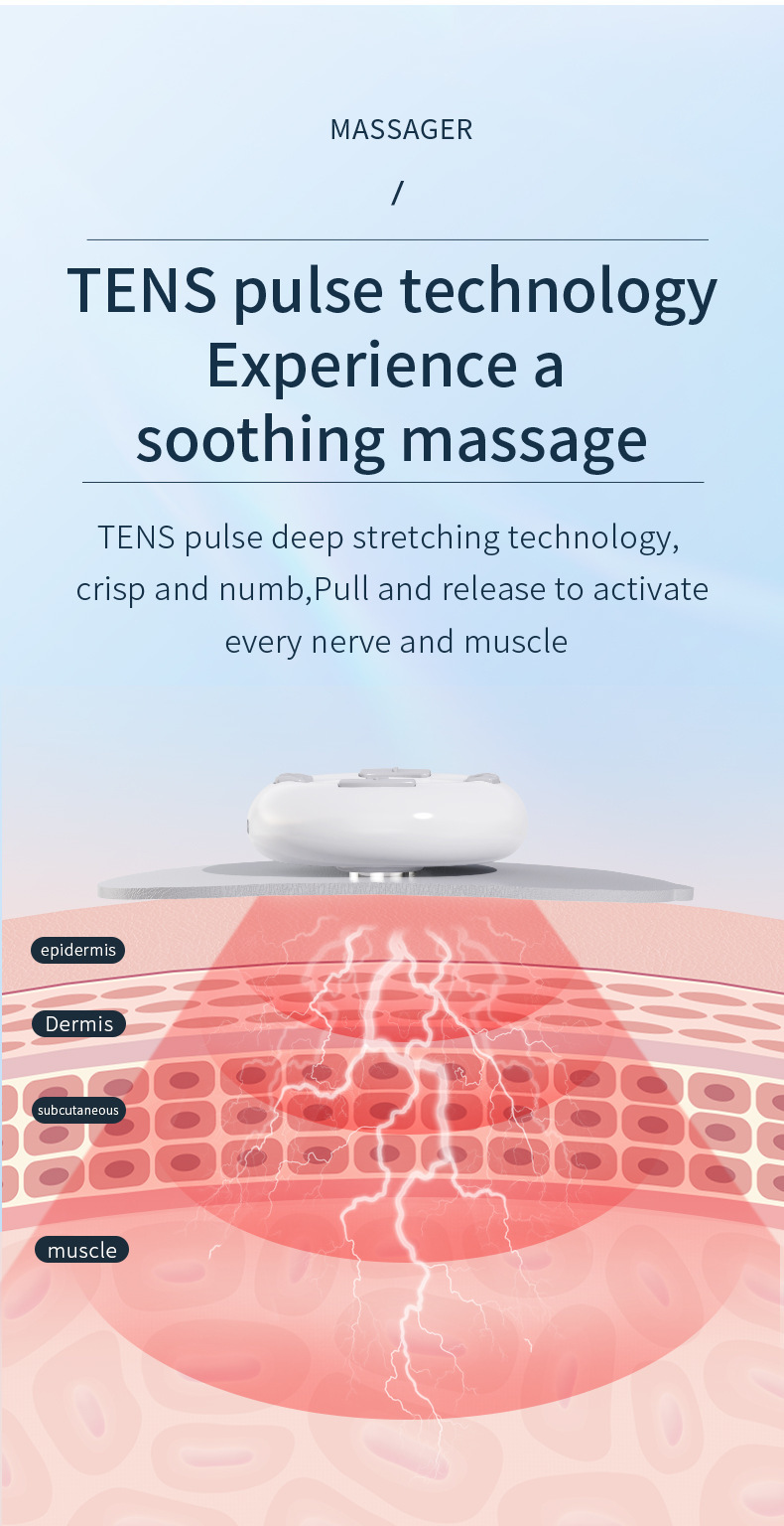 This product is a smart cervical spine EMS massager sticker designed to provide targeted muscle relief and relaxation. It features multiple massage modes and adjustable strength levels, allowing for a customized massage experience. Compact and portable, it is suitable for use on various body parts to alleviate muscle soreness and tension effectively.